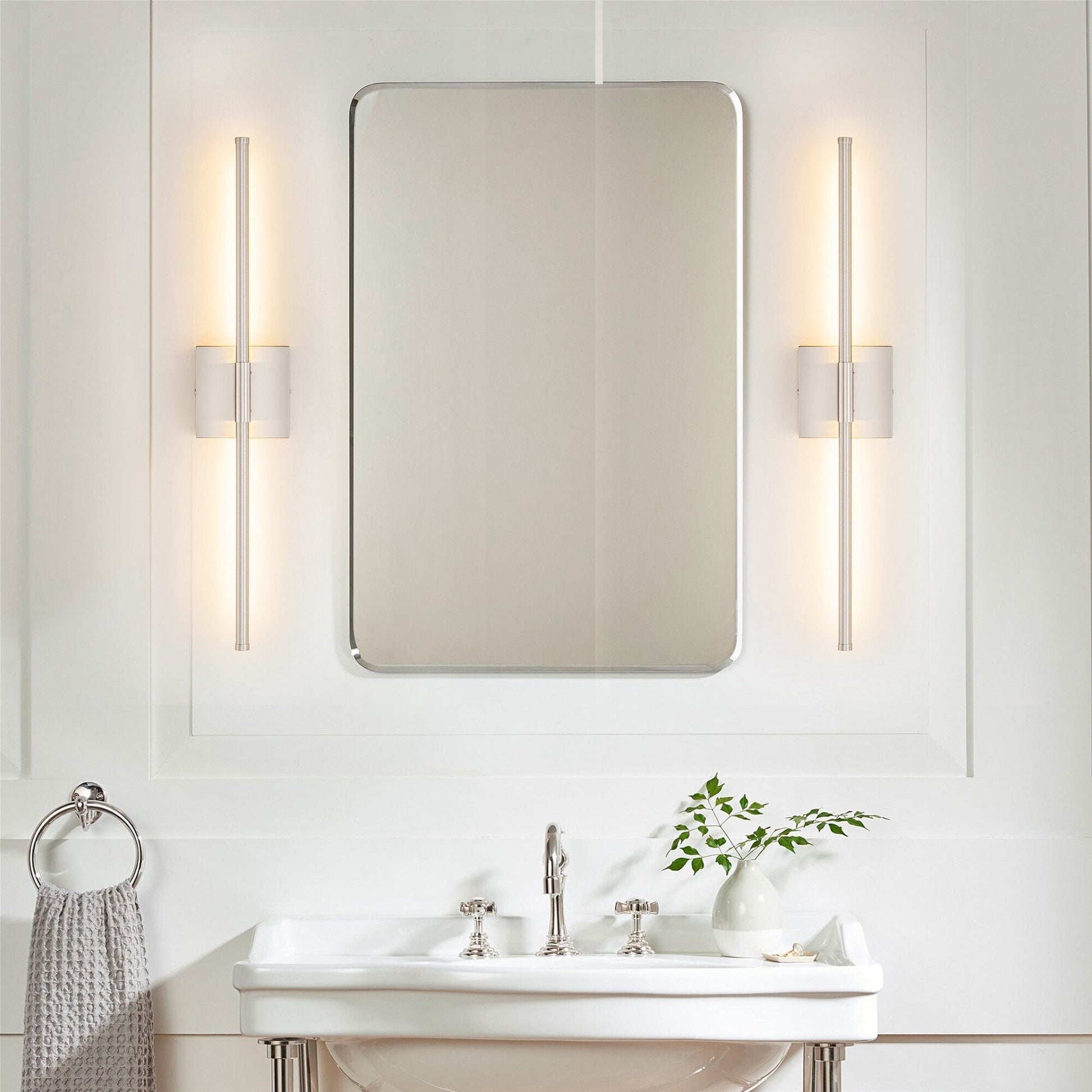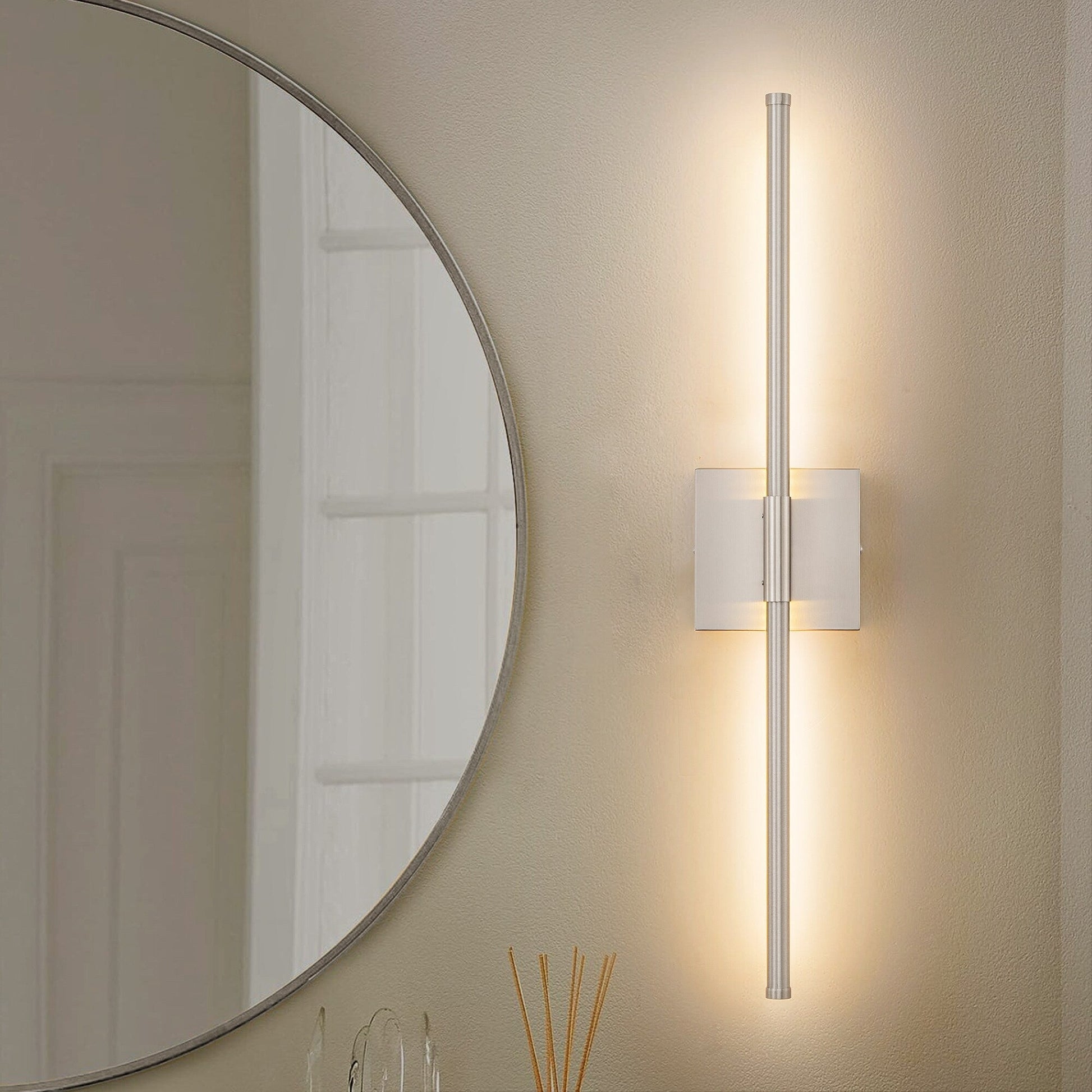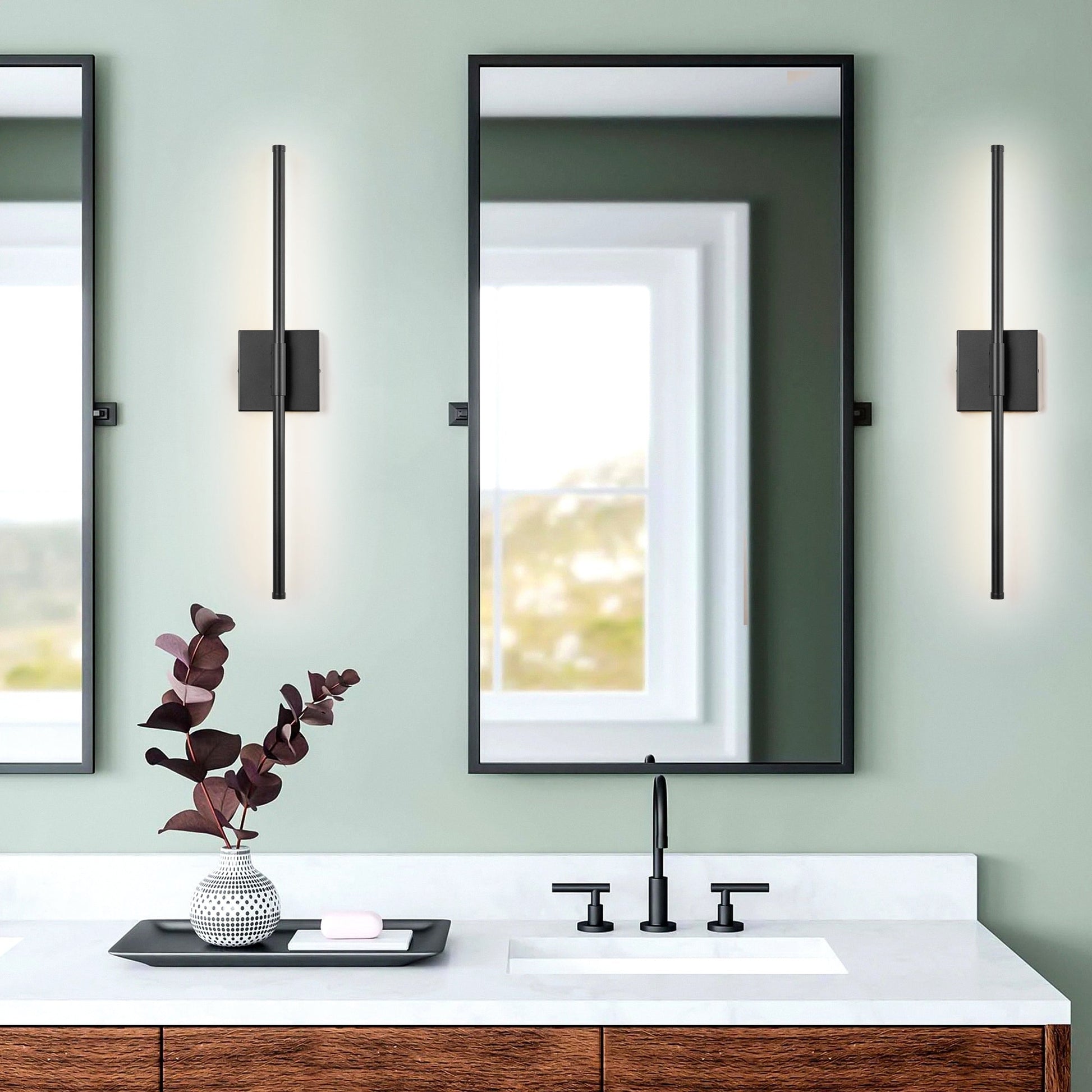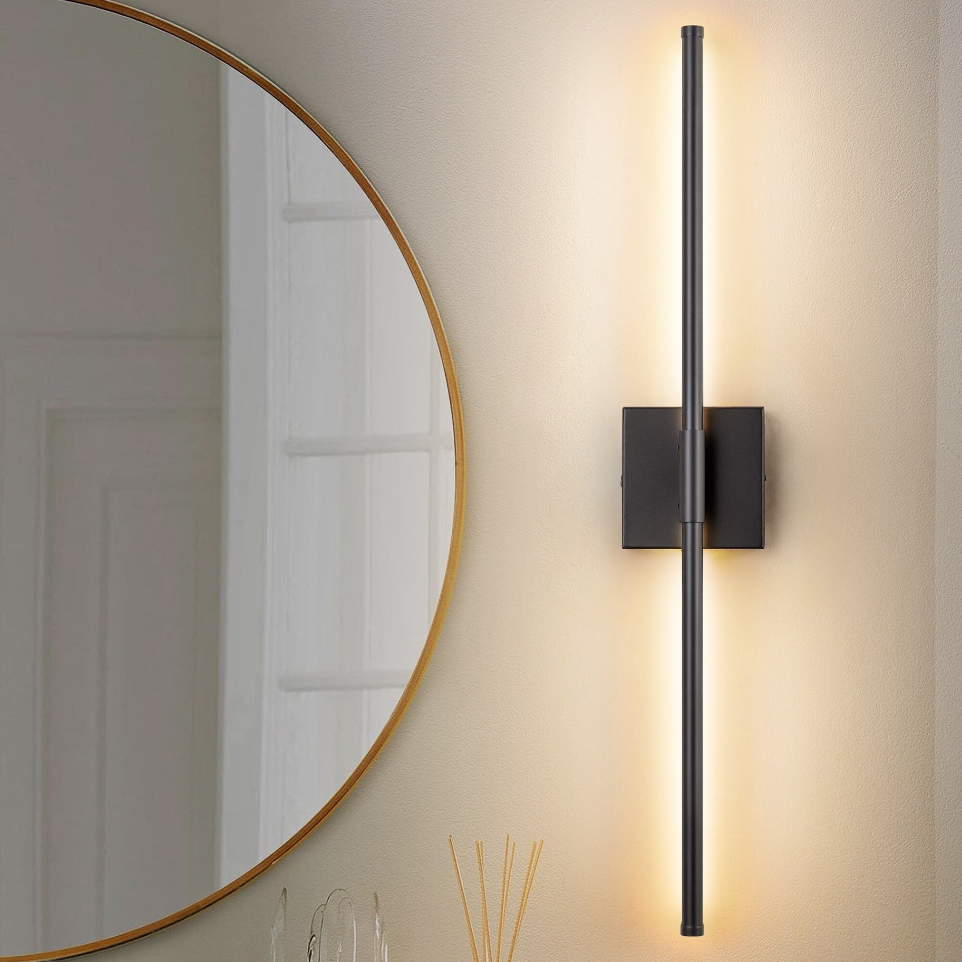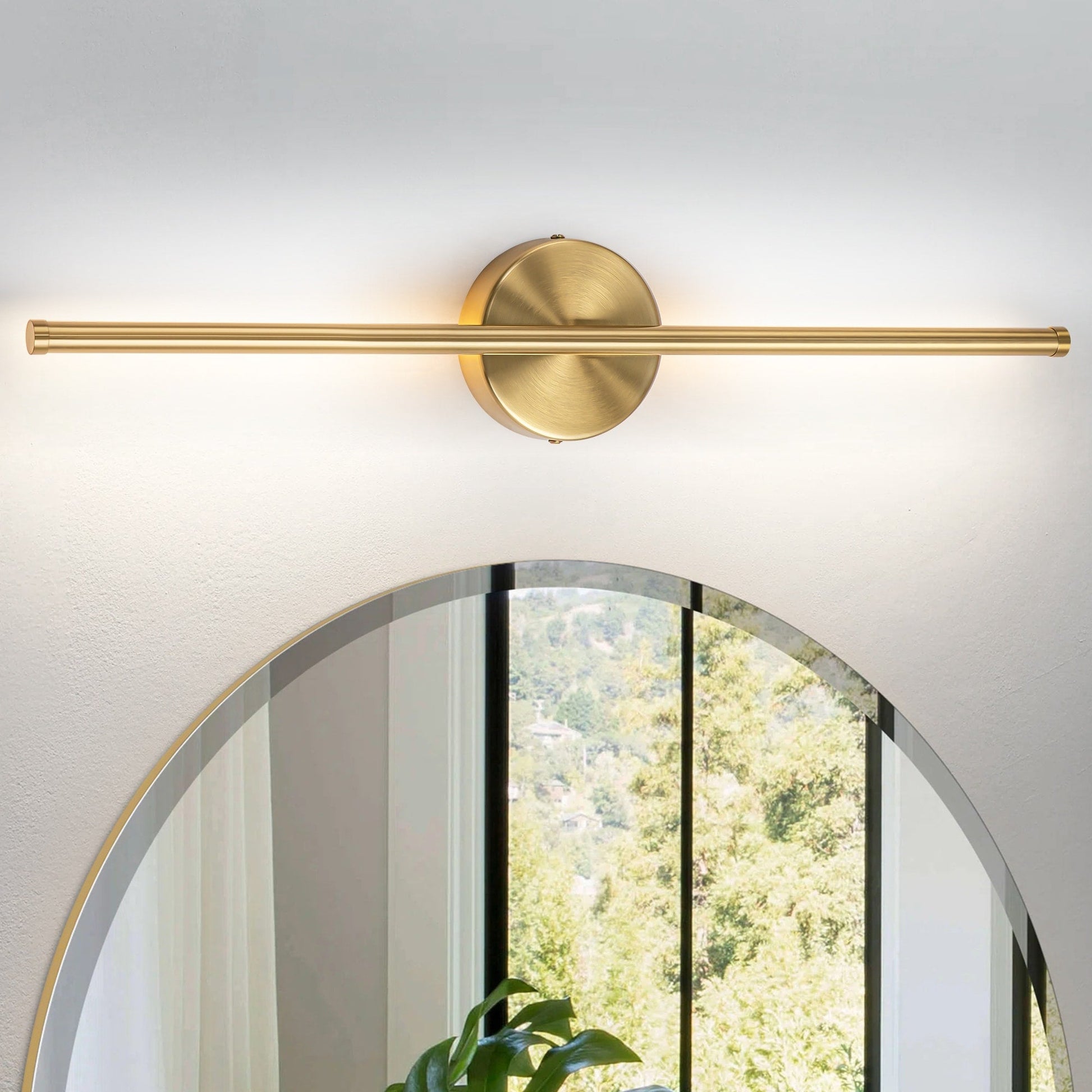 Applique murale LED linéaire moderne à 1 lumière, noire/dorée/nickel, à intensité variable, pour salle de bain.