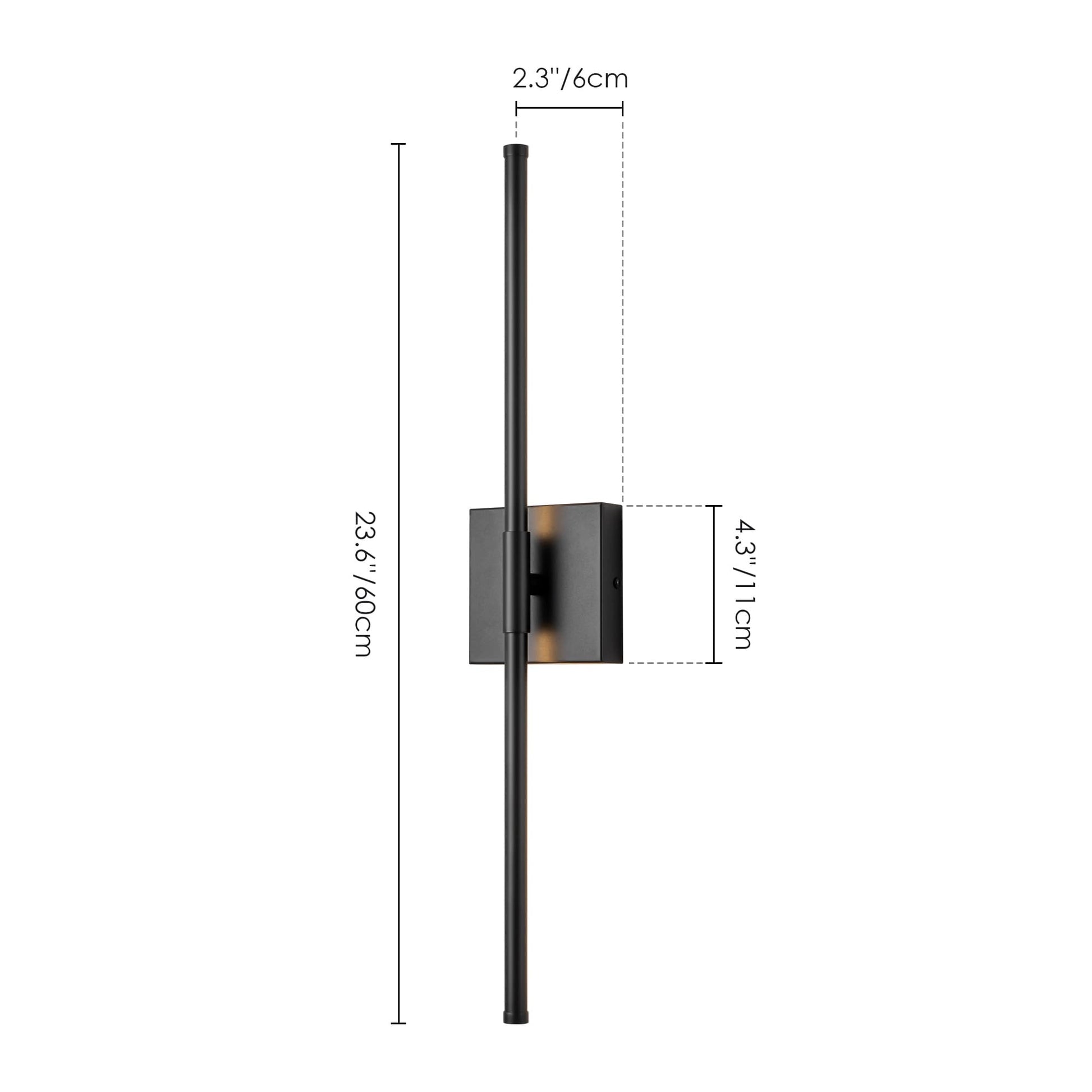 - Dimensions du luminaire : 23,6 po L x 1,7 po H x 1,7 po P / 23,6 po L x 2,3 po H x 2,3 po P (profondeur par rapport au mur)
