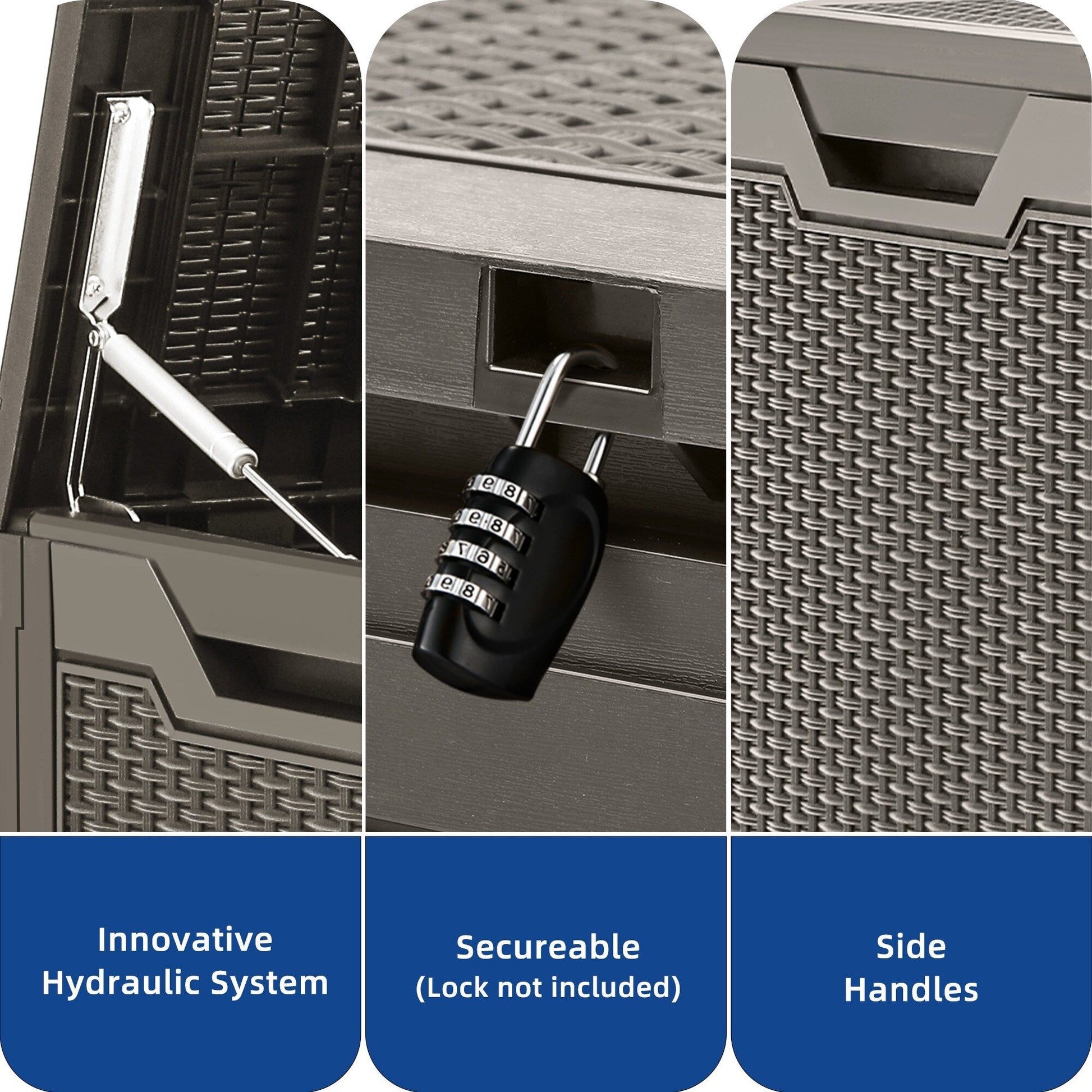 - Peut être utilisé à l'intérieur ou à l'extérieur pour ranger les coussins de mobilier de jardin, les outils de jardinage, les accessoires de plein air et de piscine ; un couvercle verrouillable protège vos articles en toute sécurité.