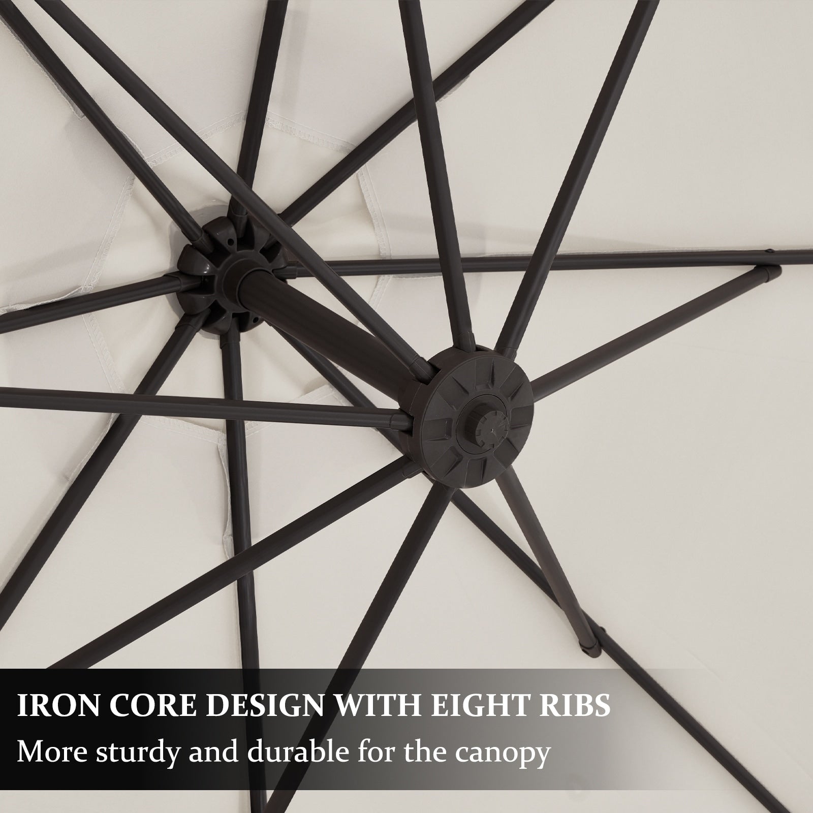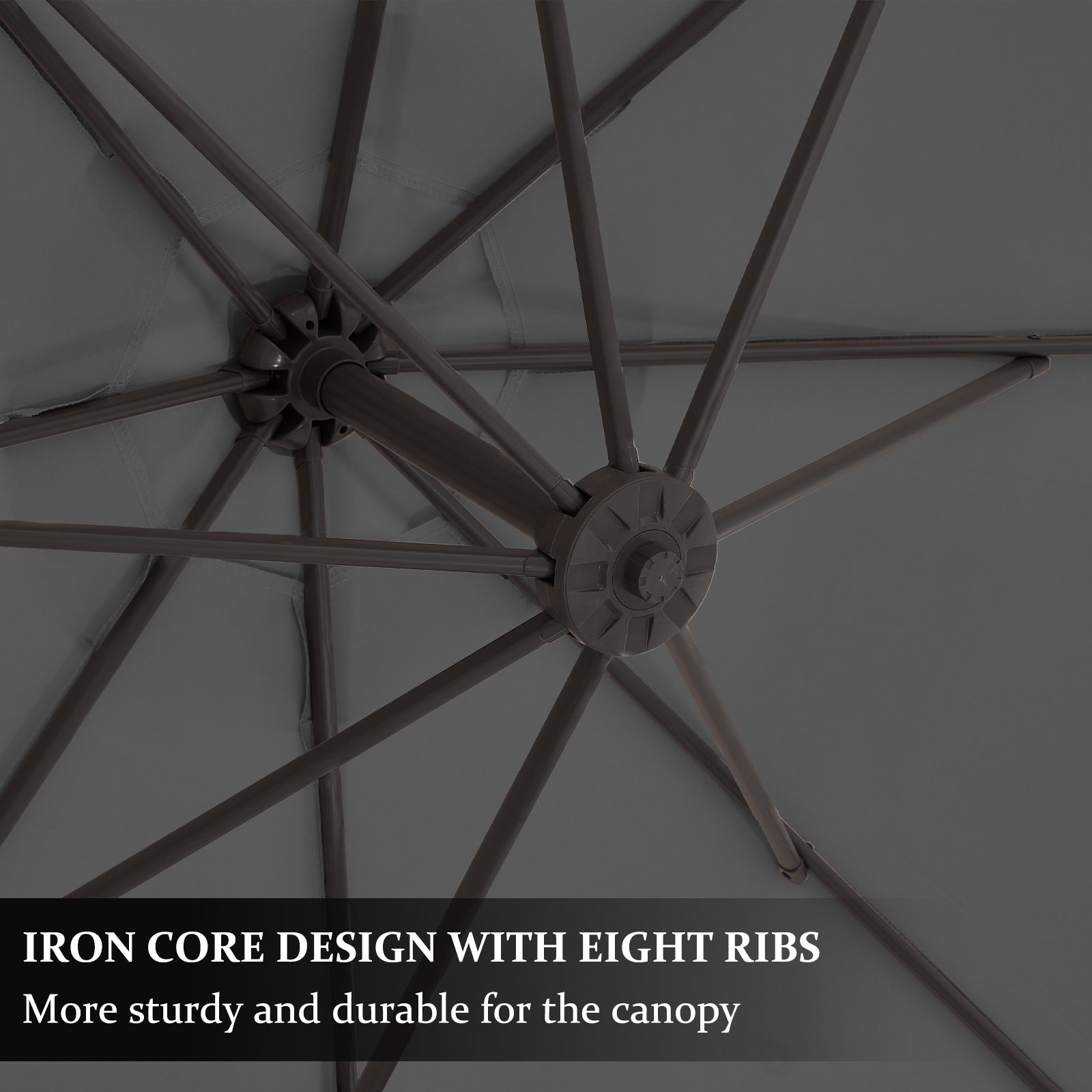 Parasol déporté suspendu à manivelle en acier de 3 m
