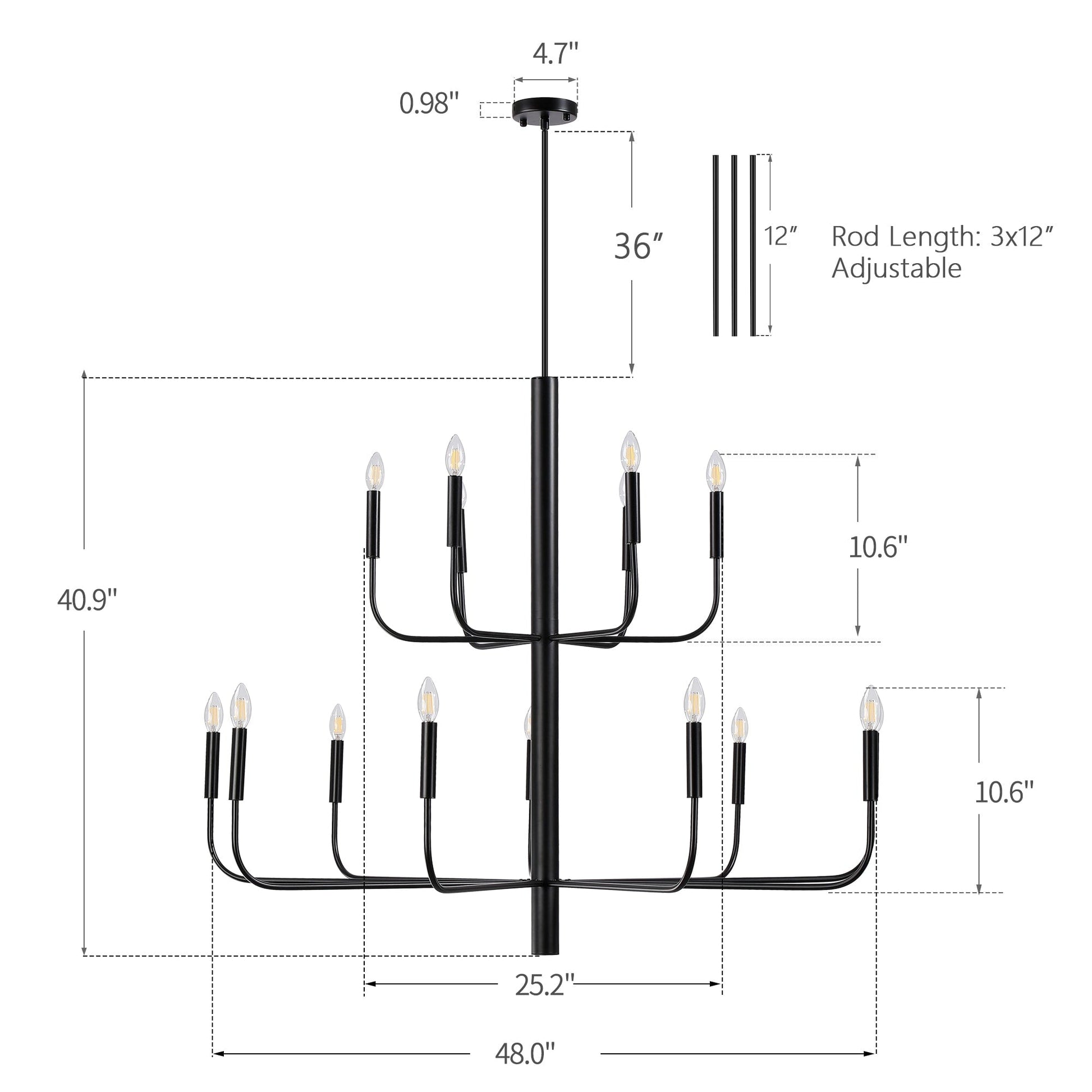 Lustre chandelier minimaliste à 15 lumières, 2 niveaux, design ancien - 48