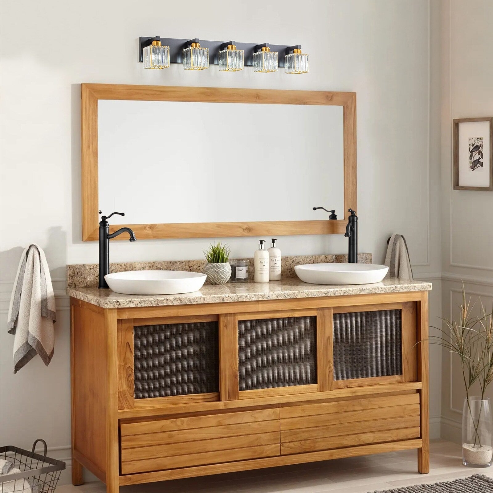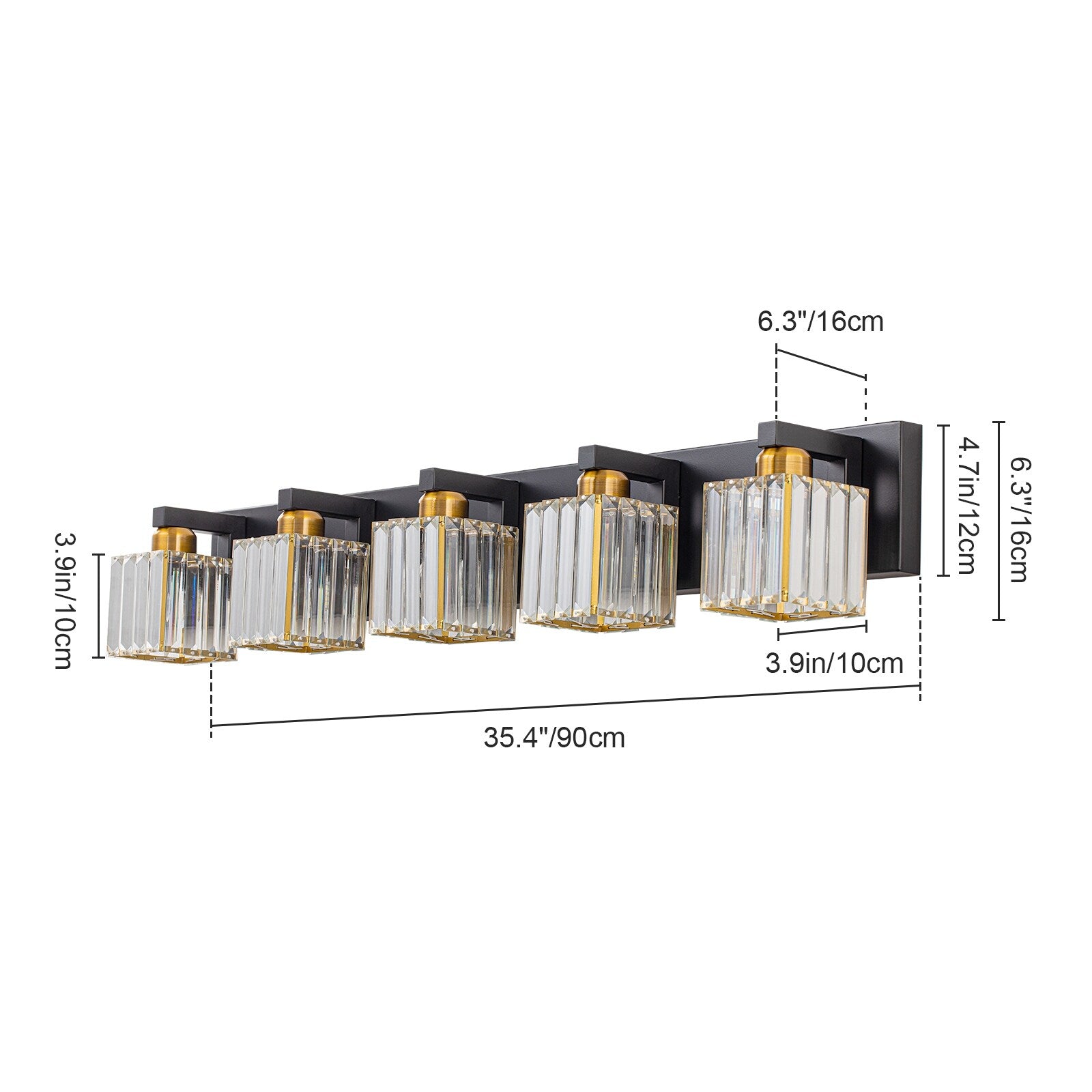 Applique murale de salle de bain à 2/3/4/5 lumières avec abat-jour en cristal