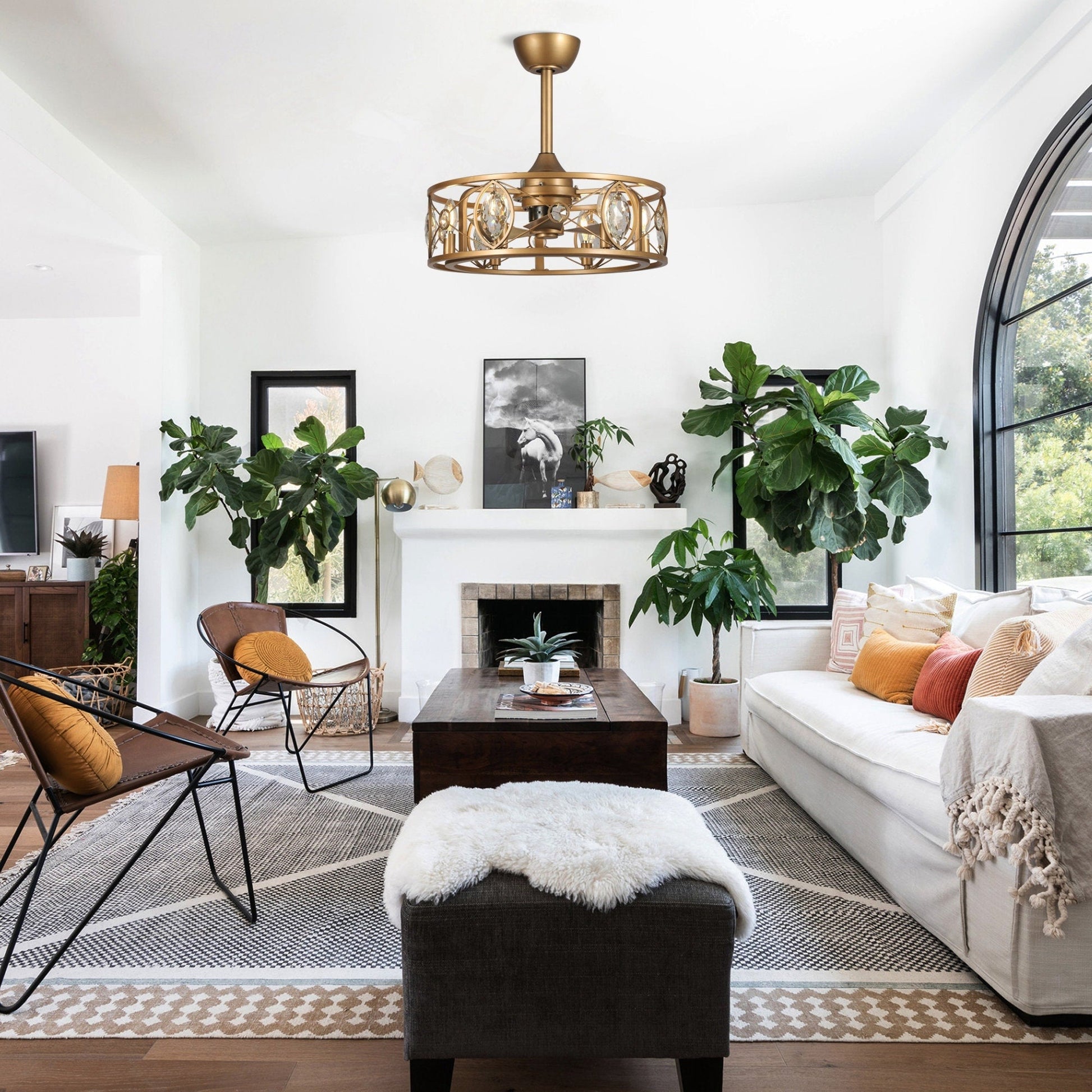 Illuminez et rafraîchissez votre pièce grâce à la chaleureuse finition en laiton de ce petit ventilateur de plafond en cristal étincelant, idéal pour créer un éclairage d'ambiance et rafraîchir votre intérieur. Parrot Uncle propose un ventilateur de plafond de 6,7 m alliant des éléments de design moderne, rustique et industriel. Son cadre en laiton, orné de gros cristaux, est associé à trois pales en ABS moulé, également en laiton, pour une touche d'élégance moderne. À la fois ventilateur de plafond et lustre, ce modèle est également livré avec six ampoules LED (non incluses) réparties à l'intérieur du lustre. La télécommande multifonction à 3 vitesses incluse vous permet de régler facilement la lumière et le flux d'air selon vos besoins.