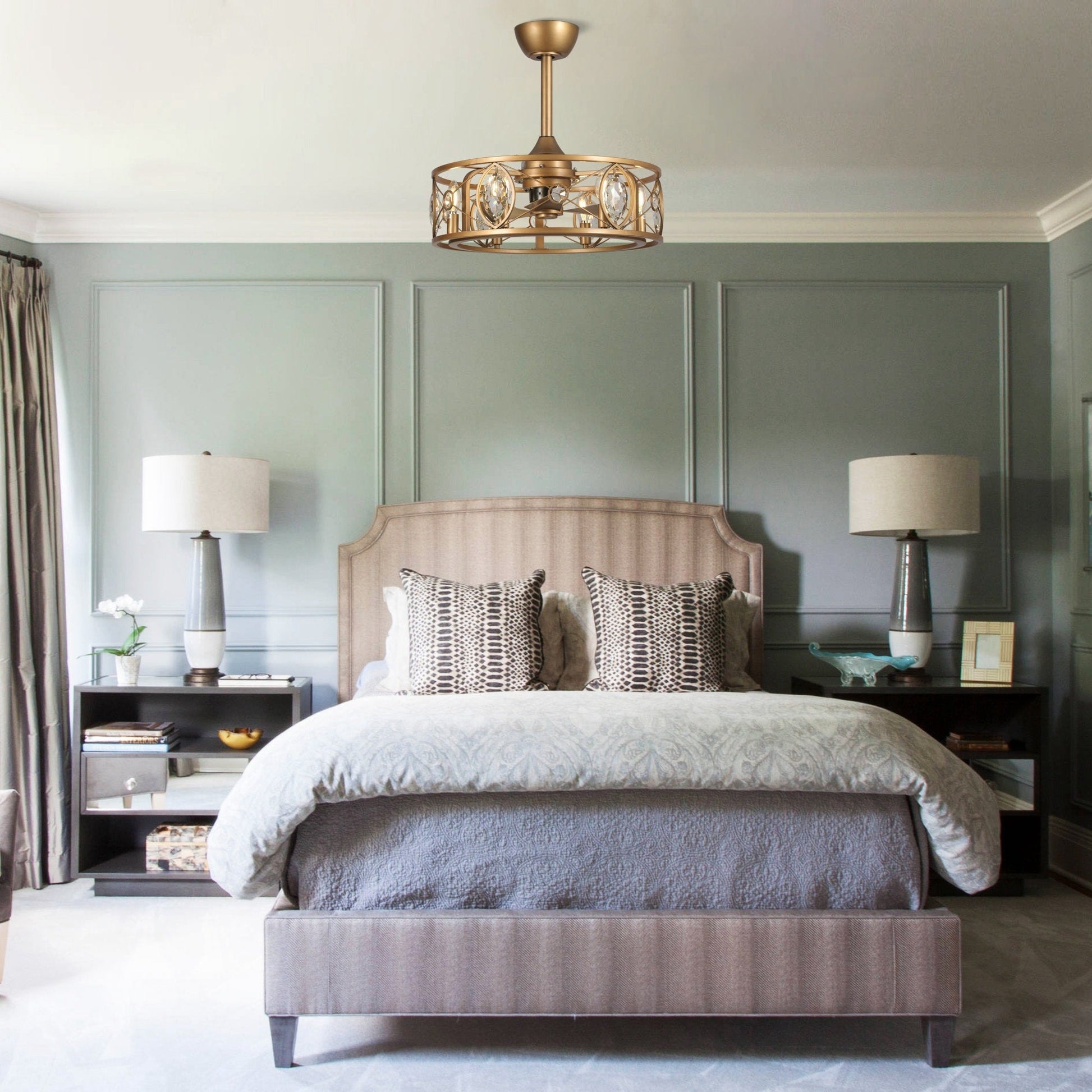 Lustre moderne en cristal avec ventilateur de plafond et télécommande