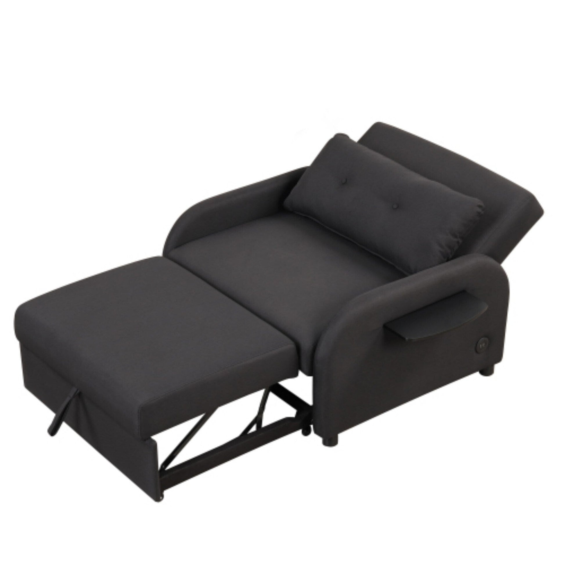 Optimisez confort et fonctionnalité avec ce canapé-lit 3 en 1 polyvalent. Idéal pour les petits espaces, il se transforme facilement d'un canapé élégant en un lit confortable pour vos invités, offrant une solution à la fois esthétique et pratique pour votre intérieur. Doté d'une tablette rabattable et de deux ports USB de chaque côté, ce canapé-lit vous permet de recharger vos appareils en toute simplicité pendant vos moments de détente. Le dossier inclinable du canapé propose trois positions différentes, tandis que les coussins amovibles, revêtus d'un tissu en lin doux, offrent un confort optimal. Grâce à son rembourrage en mousse haute densité et à sa structure en fer robuste, ce canapé-lit est conçu pour un confort durable. Disponible en trois coloris élégants – gris, noir et beige – il s'intègre harmonieusement à tous les styles de décoration.
