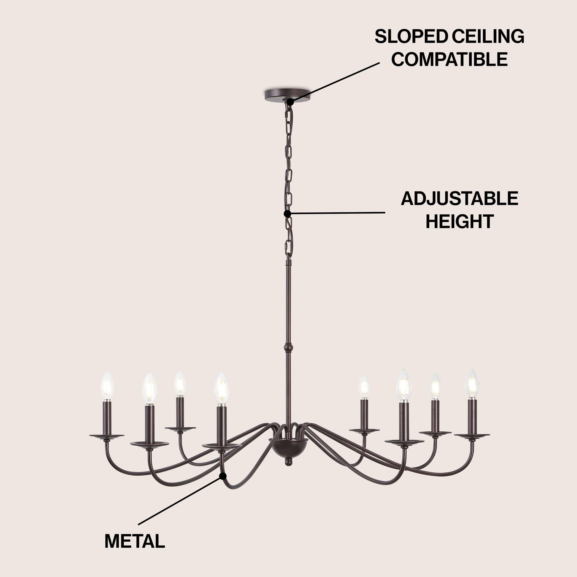 - Le lustre à hauteur réglable fonctionne mieux pour les plafonds jusqu'à douze pieds de haut