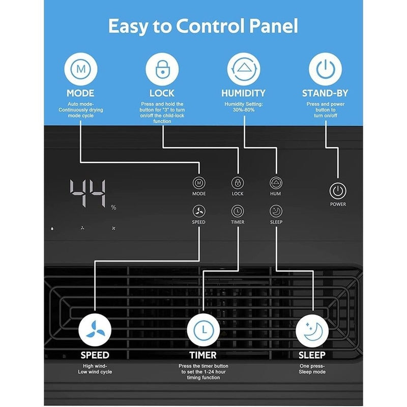 Design portable : ce déshumidificateur de sous-sol mesure 23,6 x 35,1 x 58,1 cm, ce qui lui permet d'occuper peu d'espace tout en maintenant un taux d'humidité optimal. Grâce à ses poignées encastrées et à ses 4 roulettes pivotantes, il est facile à déplacer d'une pièce à l'autre.
