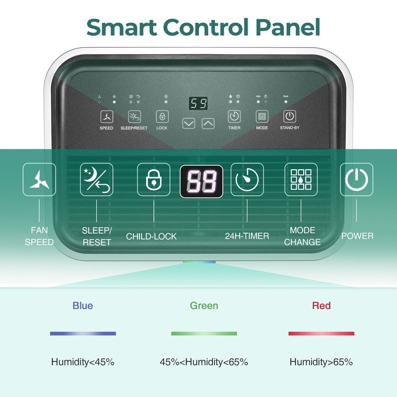 【DÉSHUMIDIFICATEURS MULTIPLES DE 3500 pi²】- Nos déshumidificateurs sont équipés de 3 modes au choix : AUTO, CONT et VEILLE. Ils offrent une capacité de déshumidification très puissante. À 18 °C et 60 % d'humidité, ils peuvent éliminer 6,2 litres d'humidité par jour. À 30 °C et 80 % d'humidité, ils peuvent éliminer jusqu'à 20 litres d'humidité par jour. C'est le déshumidificateur idéal pour les sous-sols, bureaux, maisons, salles de bains, chambres, cuisines, réserves, salons, buanderies, caves, etc.