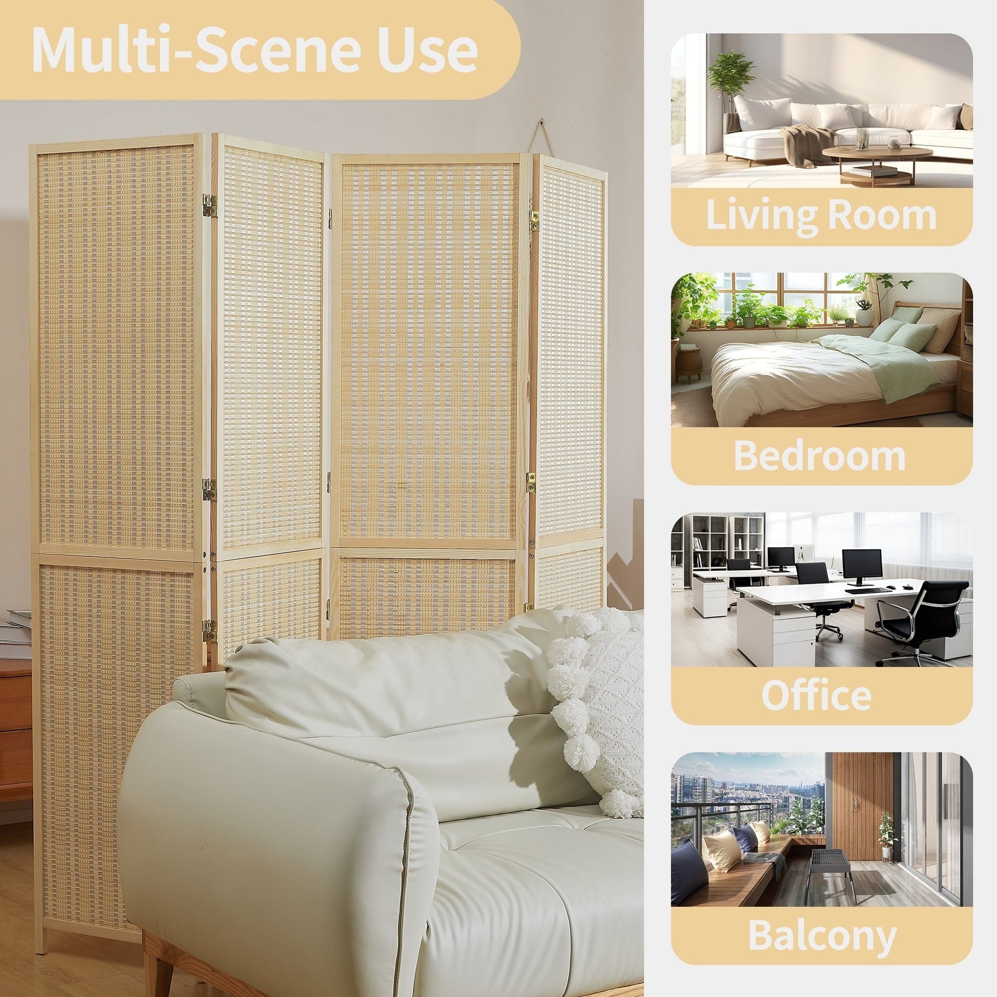 Paravent en bambou 4/6 panneaux, 1,83 m, amovible et pliable, pour séparer les pièces et préserver l'intimité.