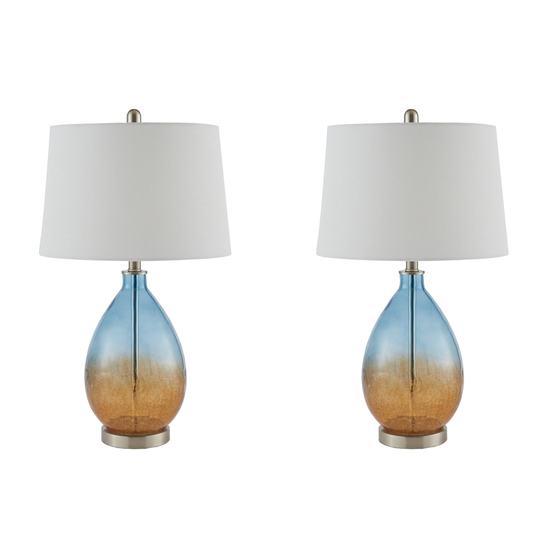 Sublimez votre intérieur avec le lot de 2 lampes de table Cortina Ombre en verre. Leur pied en métal et verre coloré leur confère une allure élégante et raffinée. L'abat-jour conique en forme de tambour diffuse une lumière douce et complète harmonieusement le décor.