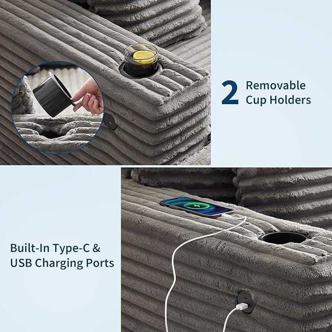 [Confort spacieux pour se détendre] Profitez d'une relaxation exceptionnelle avec cette méridienne surdimensionnée, dotée d'une assise généreuse de 137 cm de large et de 119 cm de profondeur. Parfaite pour lire, faire une sieste ou regarder un film, elle offre un espace généreux pour vous et vos proches. Son design spacieux garantit une expérience d'assise haut de gamme, ce qui en fait un ajout idéal aux salons, chambres ou espaces de divertissement. [Revêtement en velours côtelé haut de gamme et résistant] Confectionné en velours côtelé respirant de haute qualité, ce canapé-lit allie luxe et durabilité. Sa texture douce apporte une sensation de confort, tandis que la mousse haute densité et les ressorts ensachés à l'intérieur maintiennent la forme du fauteuil et offrent un soutien moelleux. Que vous jouiez, vous détendiez ou vous reposiez, le revêtement haut de gamme vous offre un confort et un style durables. [Soutien ergonomique complet du corps] Conçue pour votre confort, la méridienne surdimensionnée est dotée d'une assise profonde et ergonomique qui soutient tout votre corps. Ceci favorise la relaxation pour lire, méditer ou se détendre après une journée chargée. La structure du fauteuil favorise une posture saine et réduit la fatigue, vous procurant une sensation de fraîcheur et de confort même lors d'une utilisation prolongée. [Confort intégré] Restez connecté sans effort grâce aux ports de chargement intégrés au fauteuil-lit, vous permettant de recharger vos appareils tout en vous relaxant. Les porte-gobelets amovibles offrent un confort supplémentaire, vous permettant de savourer vos boissons préférées sans avoir besoin de meubles supplémentaires. Ces fonctionnalités bien pensées améliorent votre expérience de détente, idéale pour faire plusieurs choses à la fois tout en lisant ou en regardant la télévision. [Montage simple et design moderne et élégant] Ce fauteuil-méridienne moderne se monte facilement grâce à un processus d'assemblage simple, vous permettant de vous détendre rapidement. Son design élégant et contemporain s'harmonise avec différents styles d'intérieur, ajoutant sophistication et confort à n'importe quel espace. Que ce soit dans un salon, un bureau ou une chambre, c'est une solution d'assise élégante et pratique.