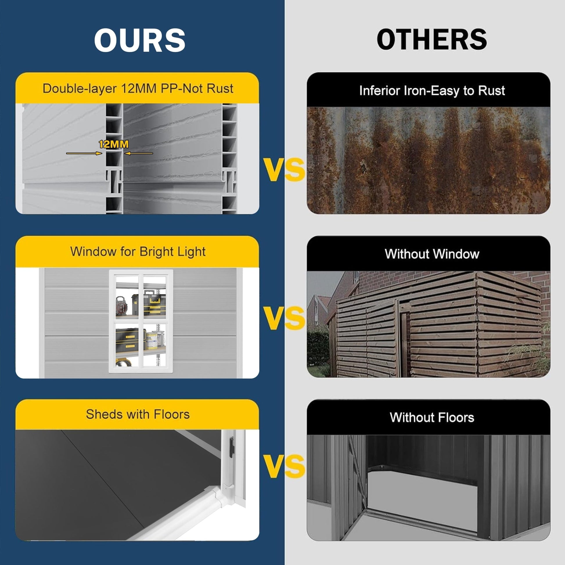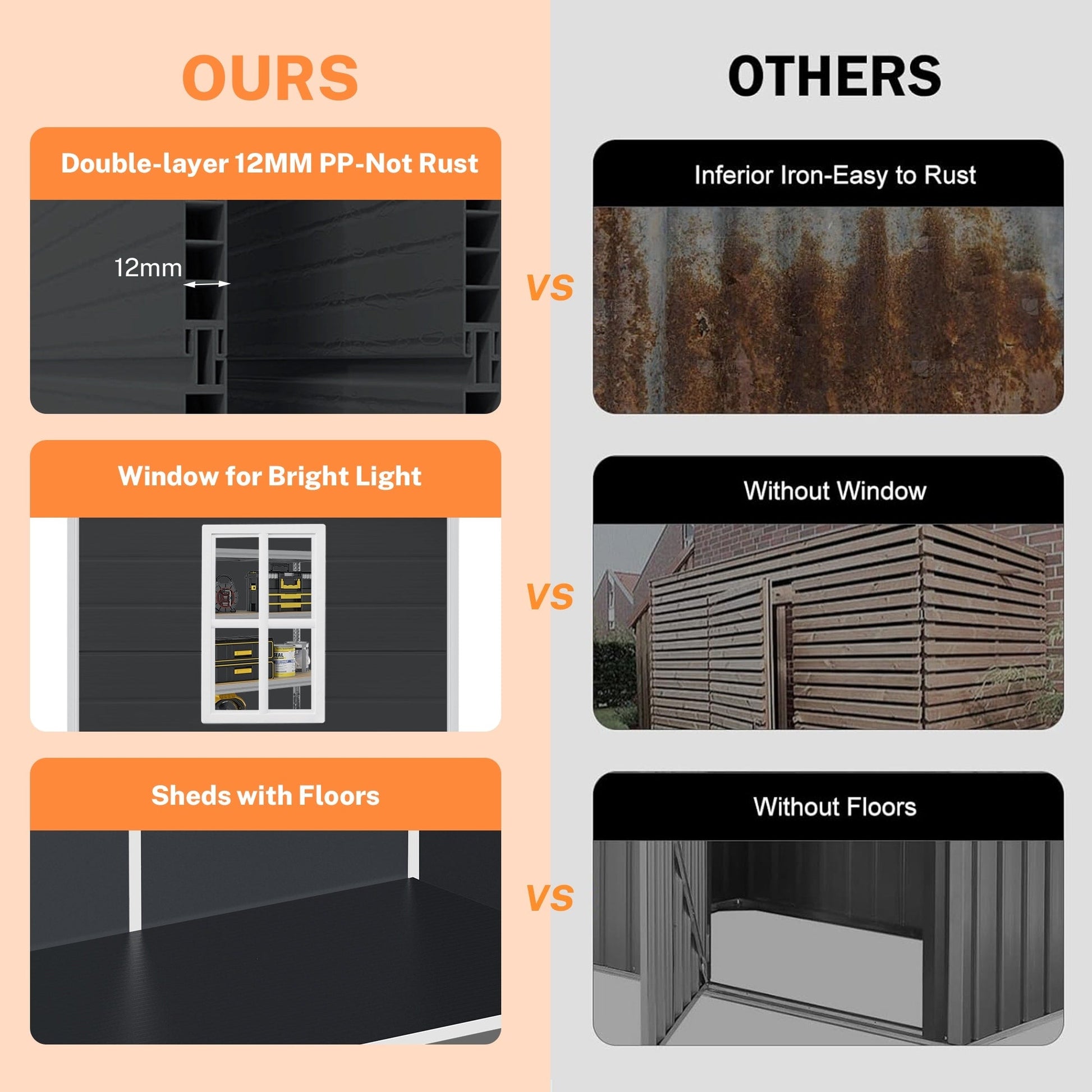 - Rangement extérieur polyvalent, comme un abri de rangement pour outils, une salle à déchets ou une pièce confortable pour animaux de compagnie.