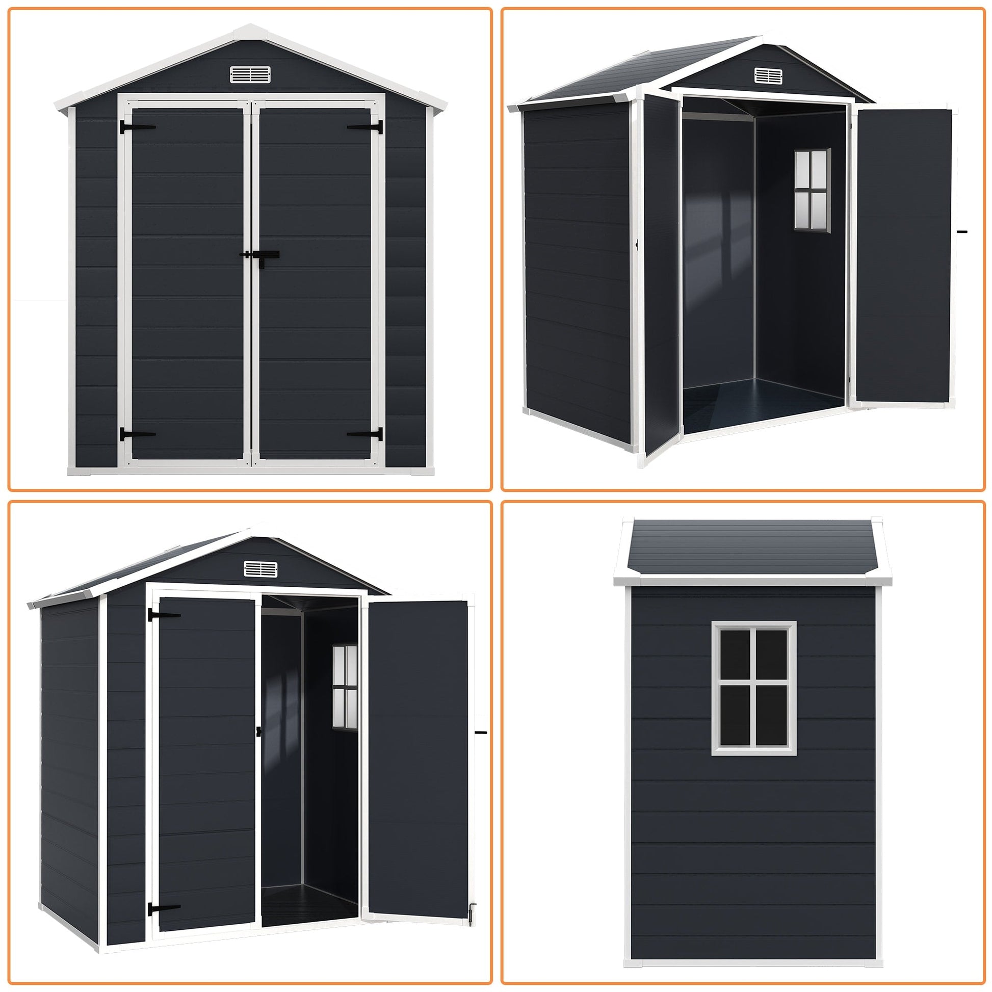 Abri de rangement extérieur en plastique et résine toutes saisons de 6 pi x 4 pi/6 pi x 8 pi/8 pi x 6 pi/8 pi x 10 pi avec plancher, abri à outils Spire