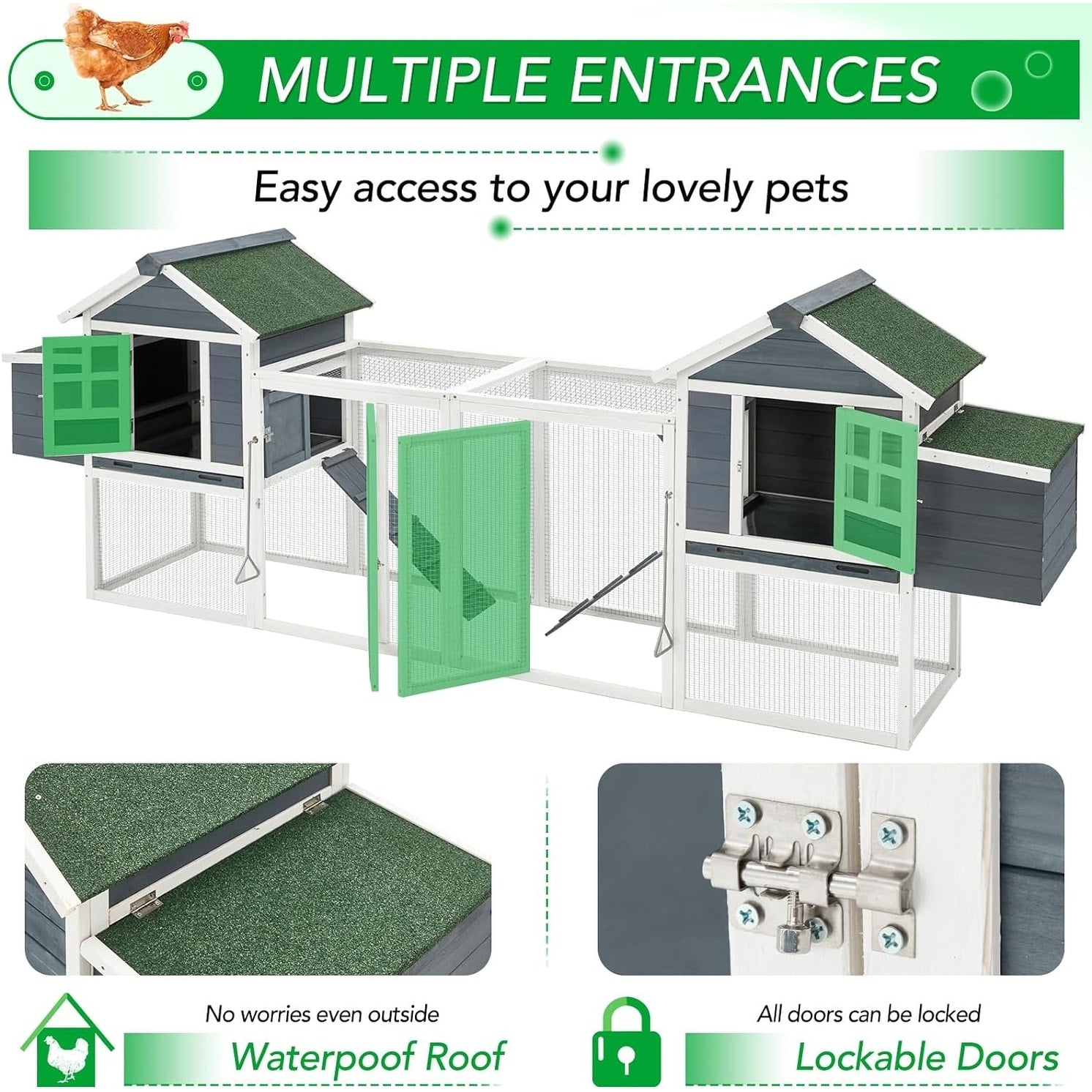 AECOJOY 144'' Grand Poulailler avec Enclos Clapier en Bois Cage à Volaille Maison
