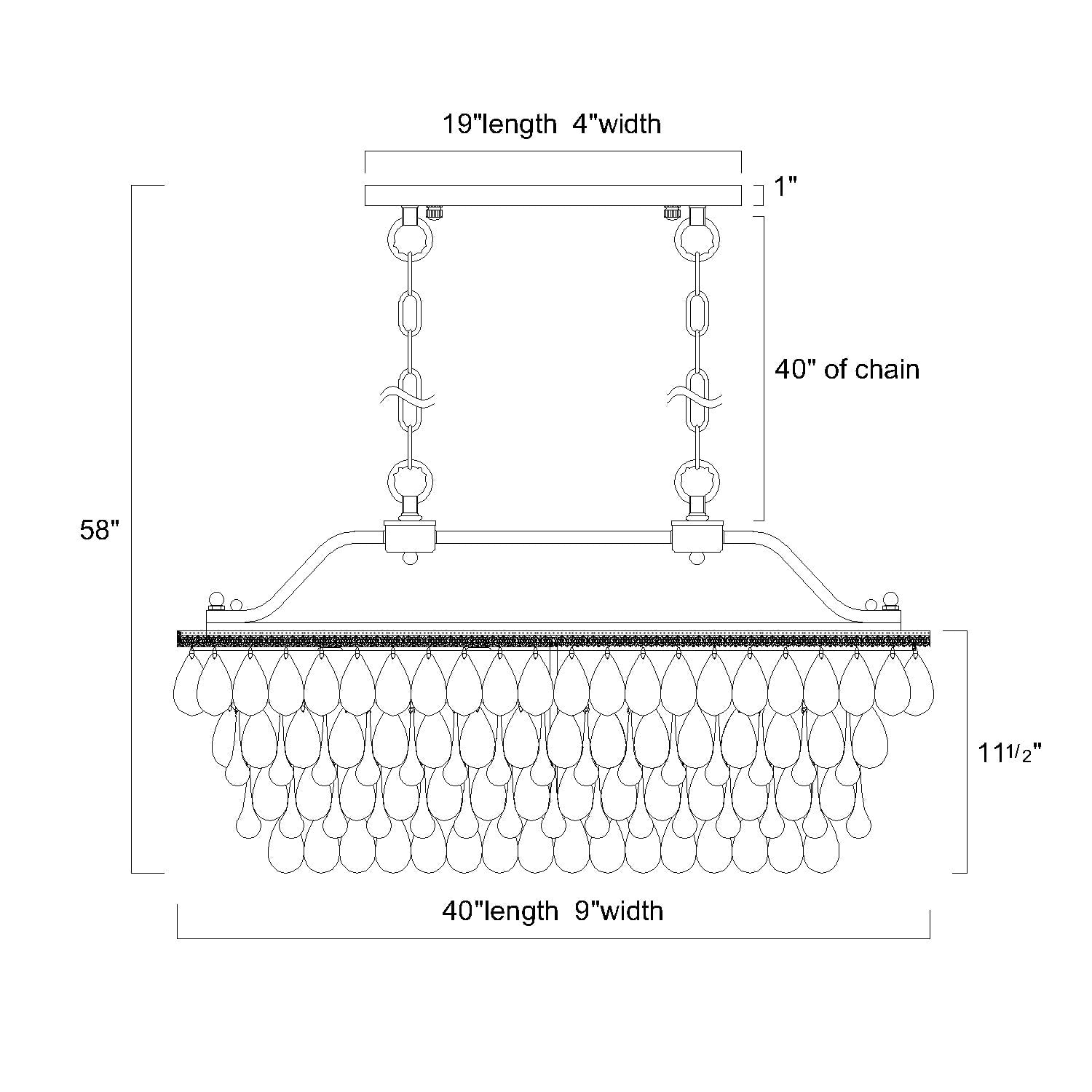 Donnez une touche d'originalité à votre salle à manger ou à votre cuisine avec cet opulent luminaire rectangulaire pour îlot de cuisine bronze antique à 6 lumières. Ce luminaire offre un style ancien à la fois traditionnel et contemporain. Quatre rangées de cristaux en forme de goutte d'eau filtrent les six lumières pour illuminer la pièce. Ses chaînes réglables de 102 cm s'adaptent à toutes les tailles de pièces et à toutes les situations. Son intensité est réglable grâce à un variateur et à l'utilisation d'ampoules adaptées.