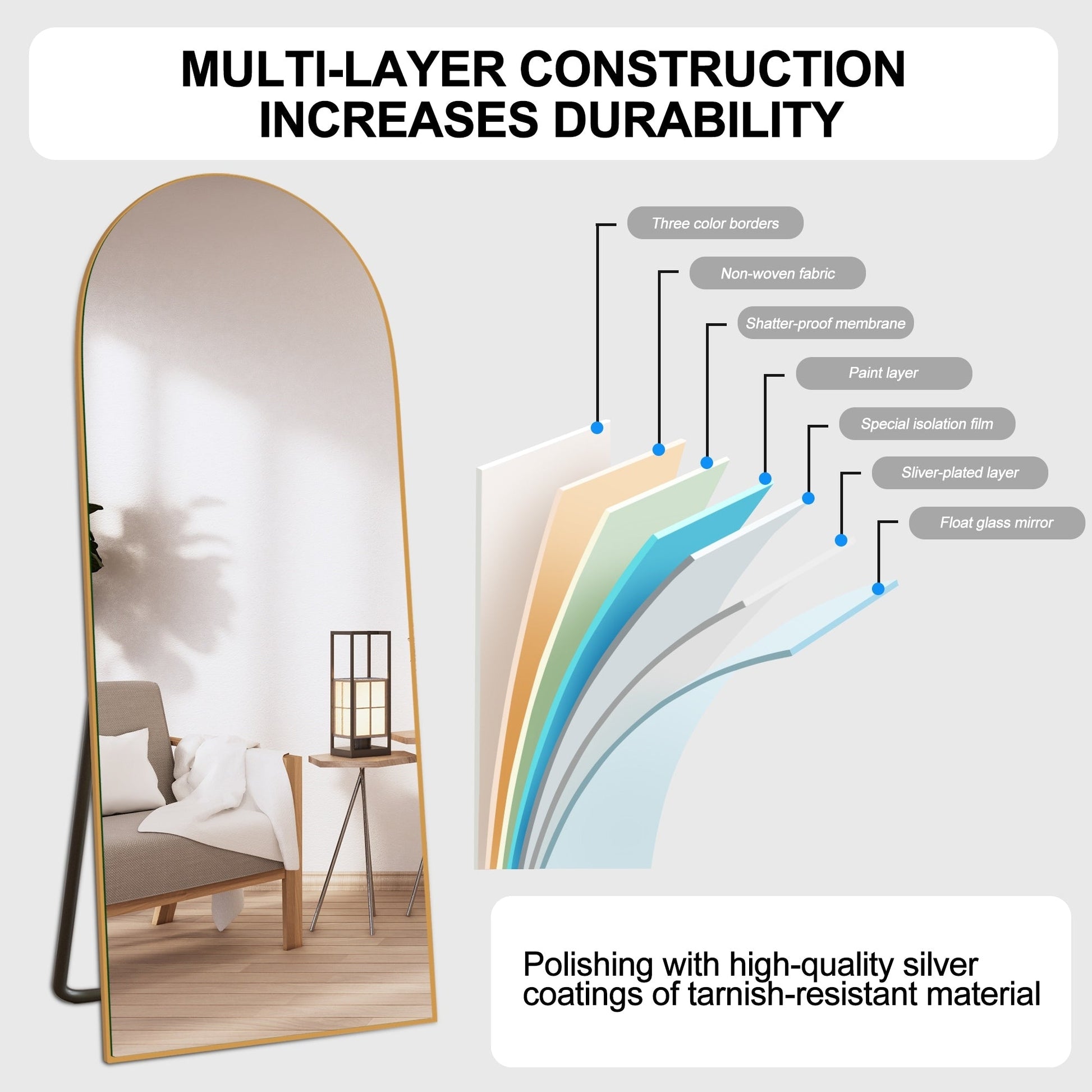 Miroir de sol en bois arqué pleine longueur, miroir mural
