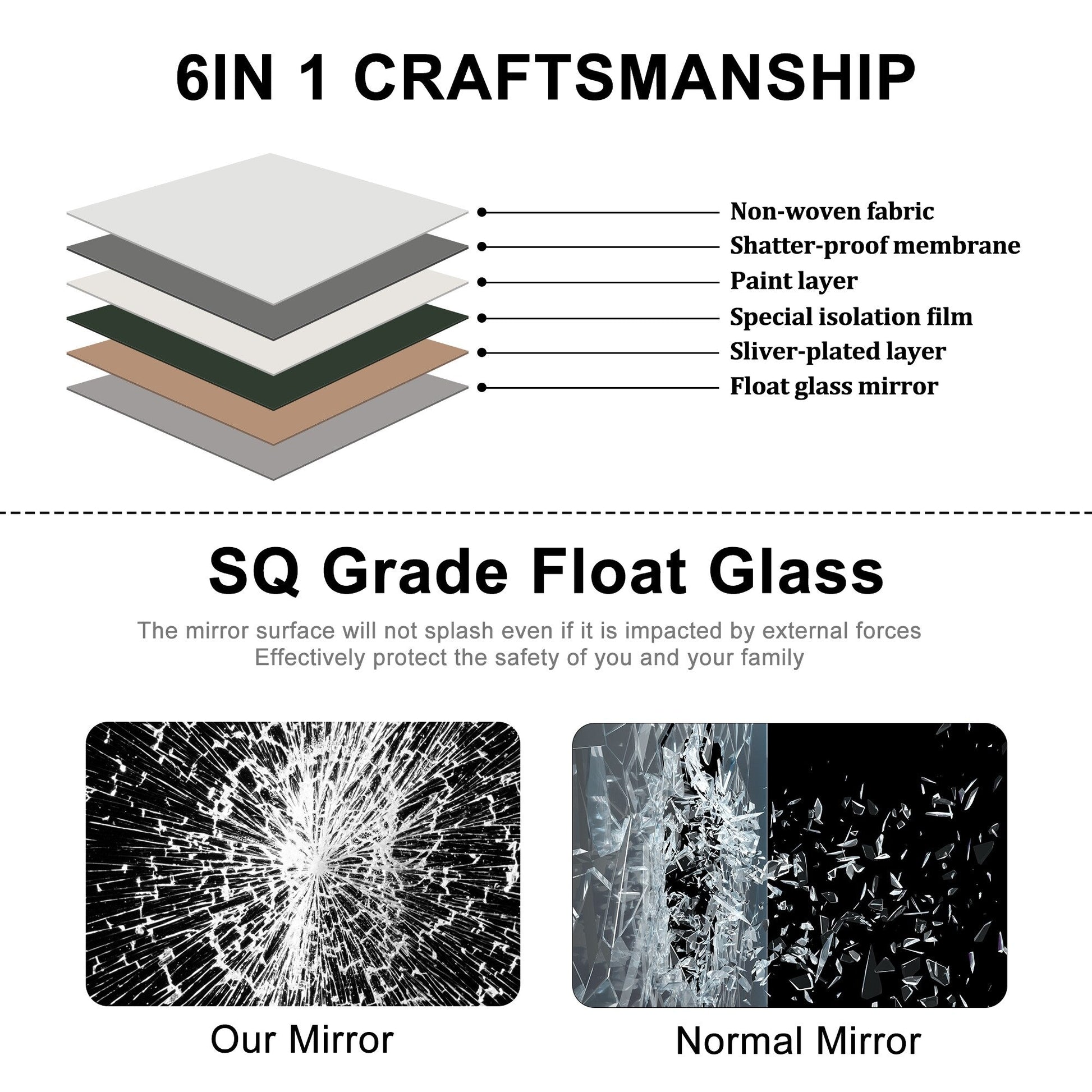 Le miroir pleine longueur est composé de verre HD de 5 mm, de verre flotté de qualité SQ qui peut fournir une image super HD et une réflexion sans distorsion.