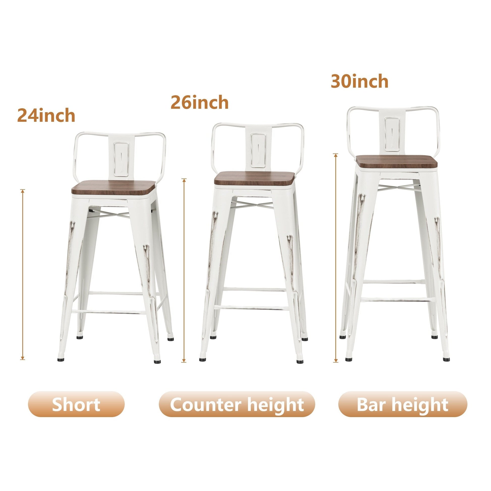 Lot de 4 tabourets de bar industriels en métal avec dossier et assise en bois