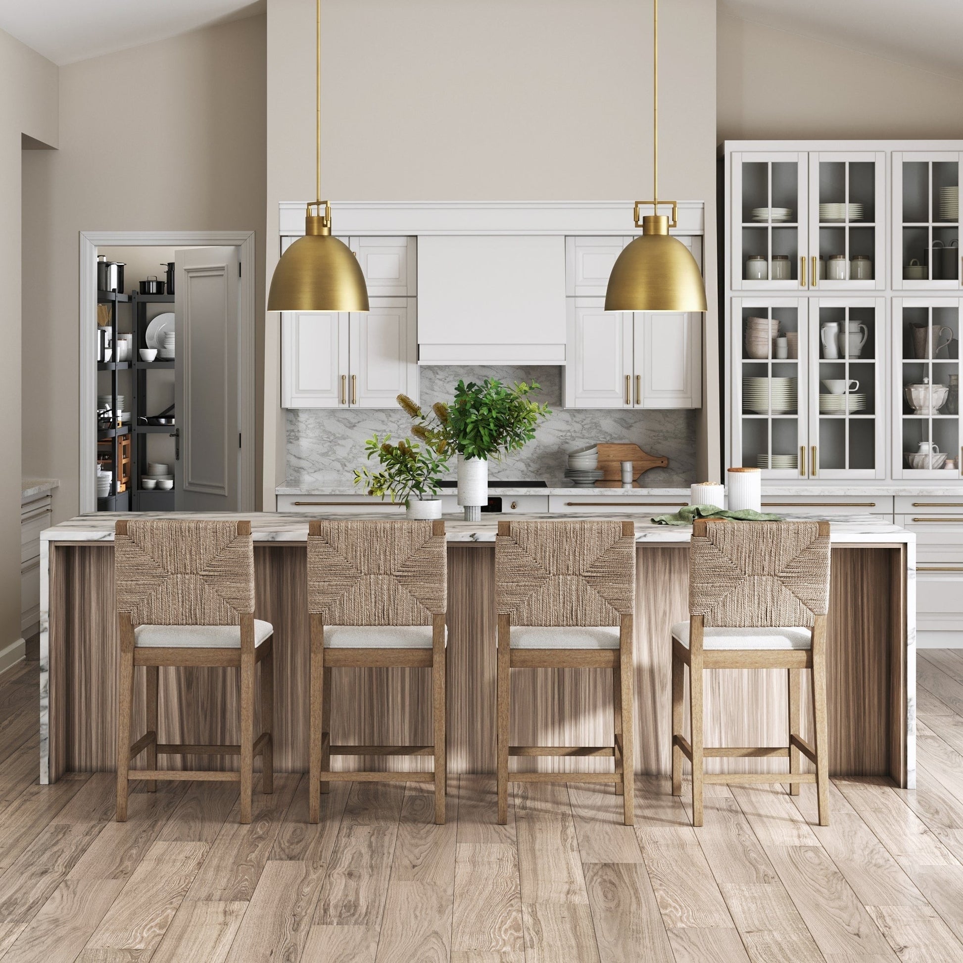 Tabouret de bar Beacon Bohemian Boucle, chaise de comptoir rembourrée avec cadre en bois massif et dossier en jonc de mer tressé