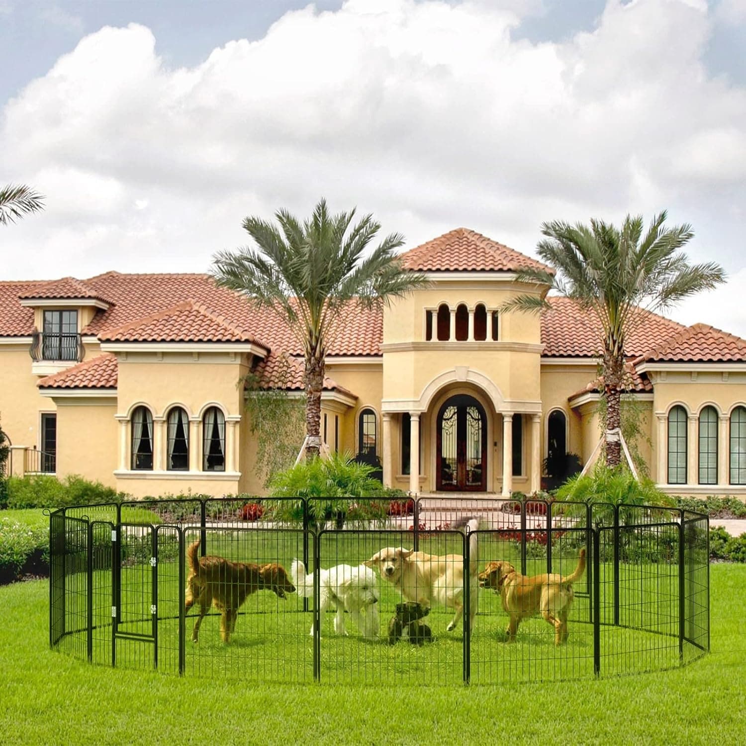 - Des panneaux spacieux de 32 pi de largeur x 24 pi/32 po/40 po de hauteur offrent un grand espace de jeu sécurisé pour les animaux de petite et moyenne taille.