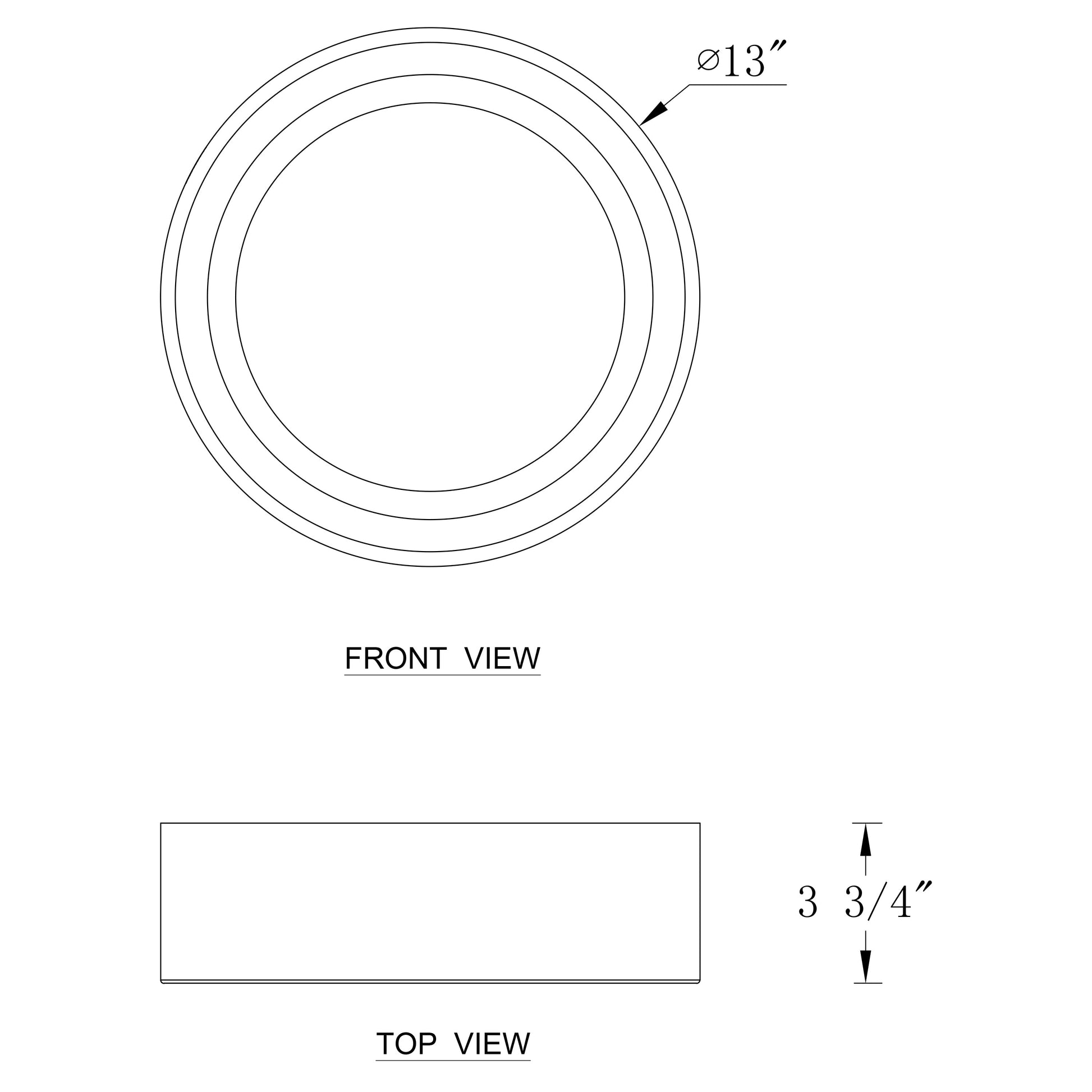 - Le luminaire de 13 pouces mesure D 13' x H 3,75', et le luminaire de 16 pouces mesure D 16' x H 3'.