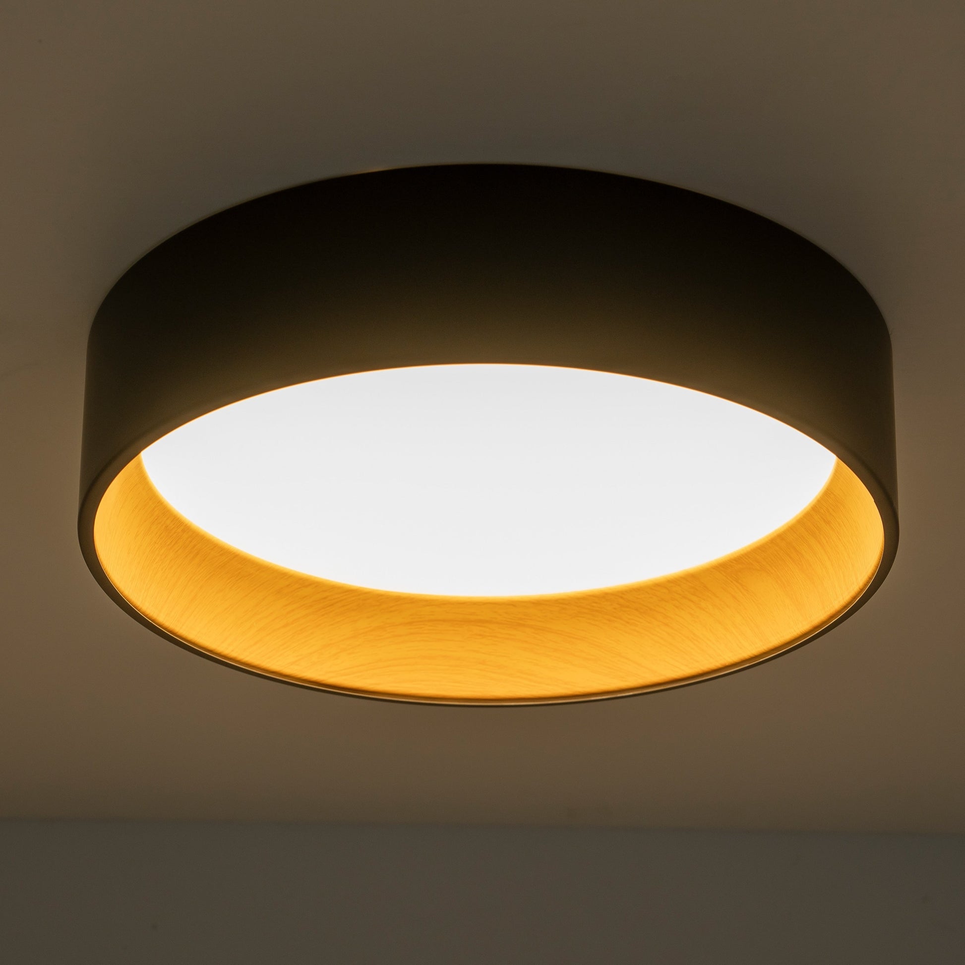 - Plafonnier LED encastré élégant, de forme tambour bicolore.