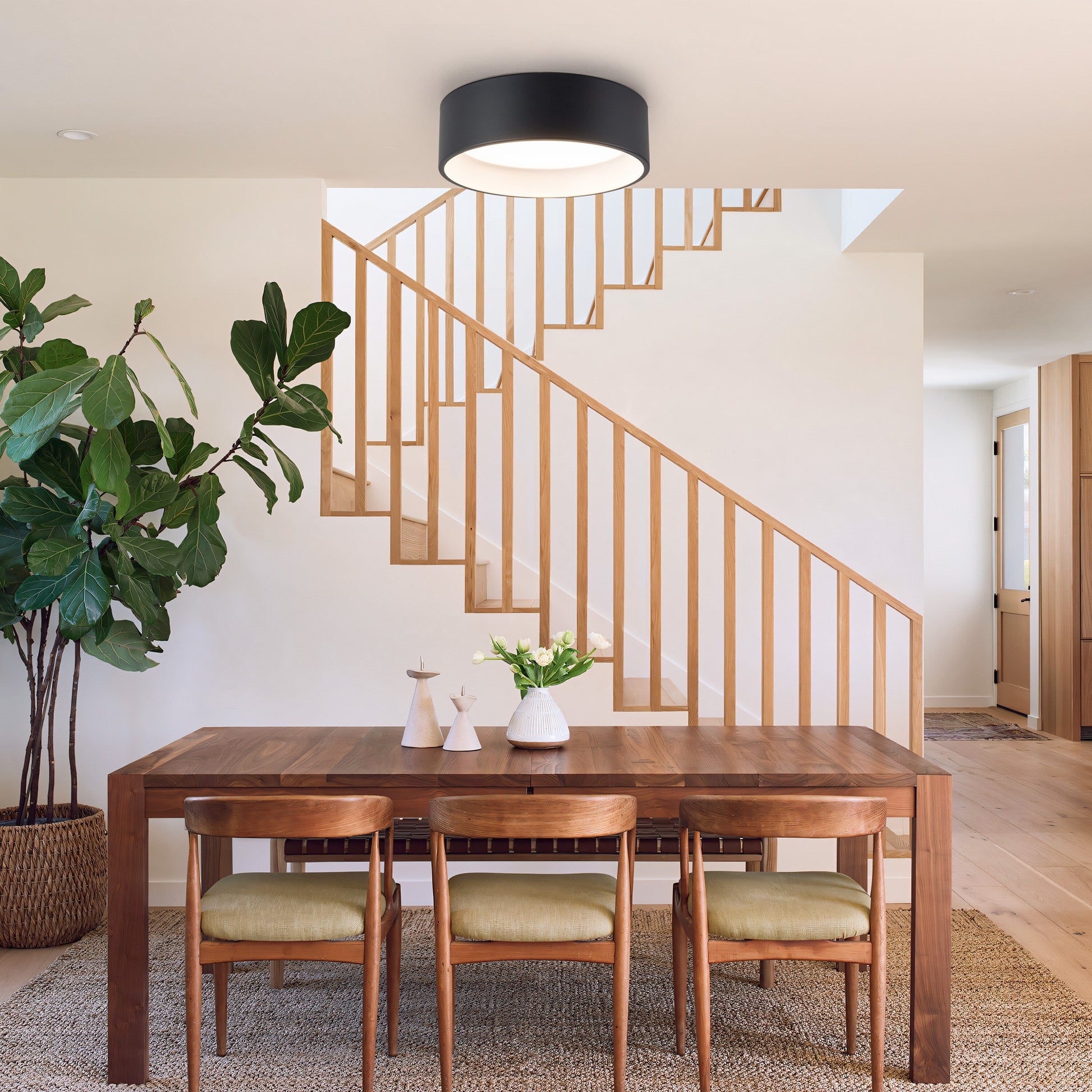 L'élégante simplicité caractérise ce plafonnier rond, doté de LED à intensité variable intégrées à un diffuseur en acrylique blanc et cerclé d'un abat-jour métallique bicolore. Son style chic et discret en fait un luminaire contemporain polyvalent, idéal pour les salons, les cuisines et les chambres. Résistant à l'humidité, il convient également parfaitement à une salle de bain.