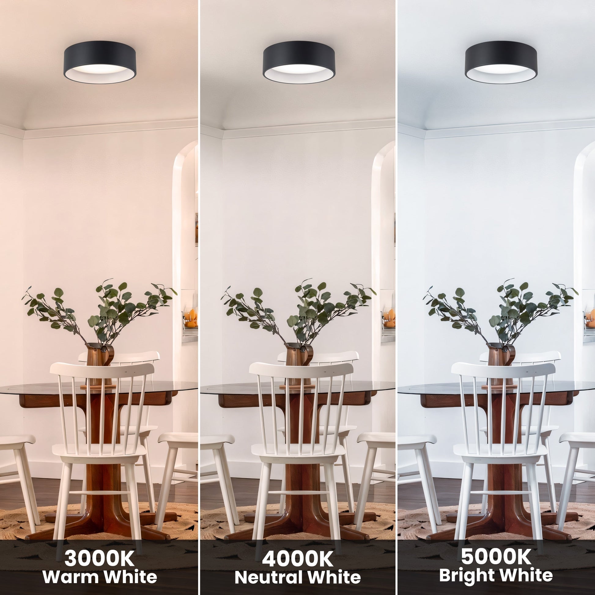 - LED intégrées à économie d'énergie 25W/28W 1800lm/2200lm, température de couleur réglable 3000K/4000K/5000K.