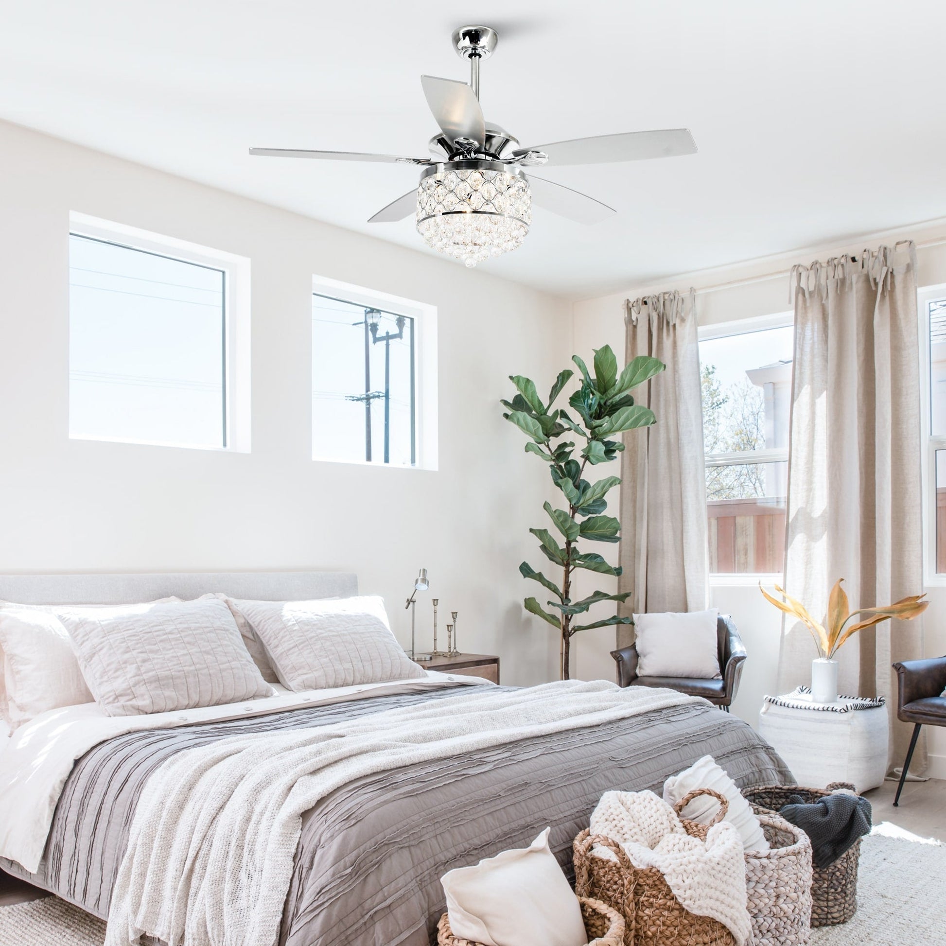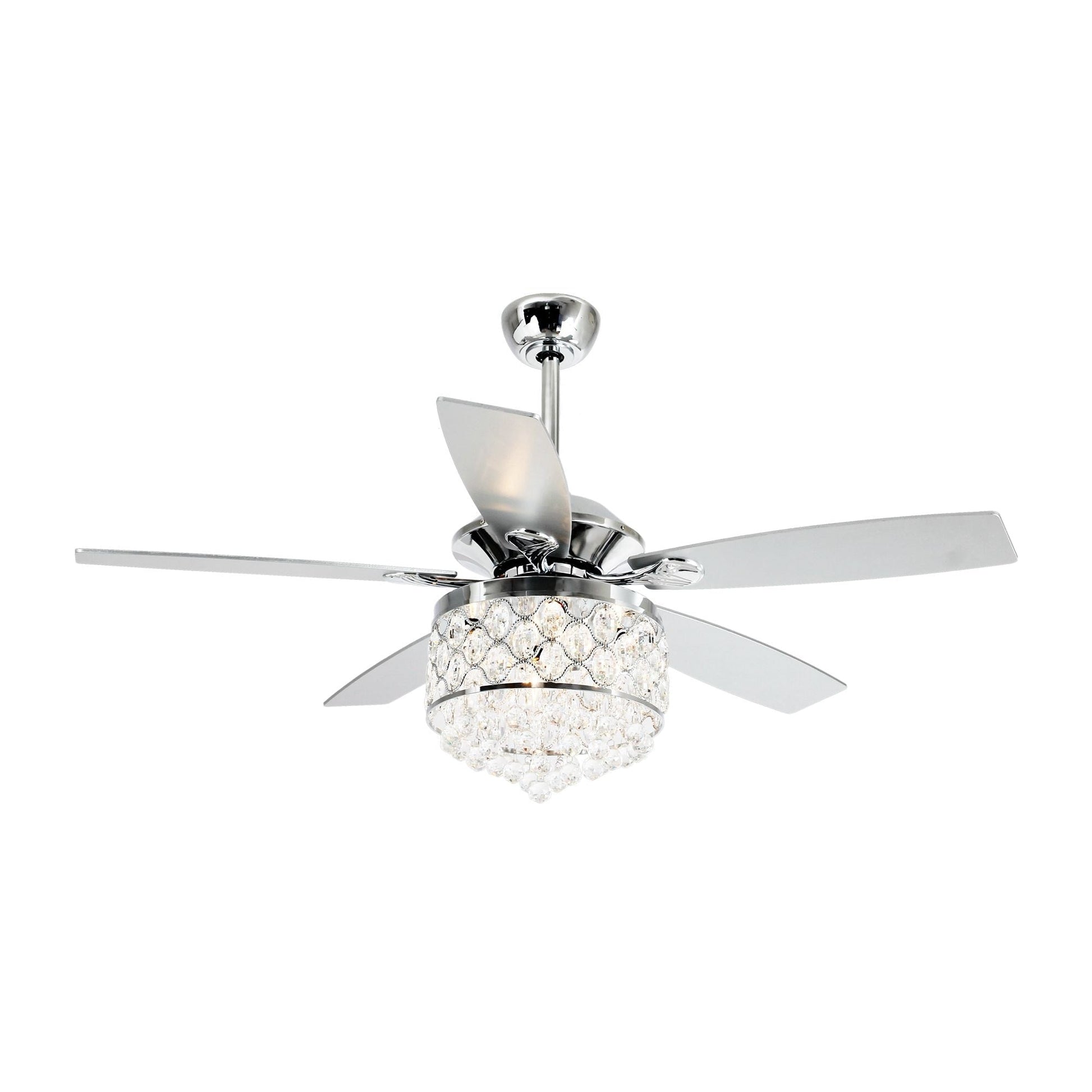 Lustre/ventilateur de plafond à 4 lumières en chrome/cristal avec télécommande