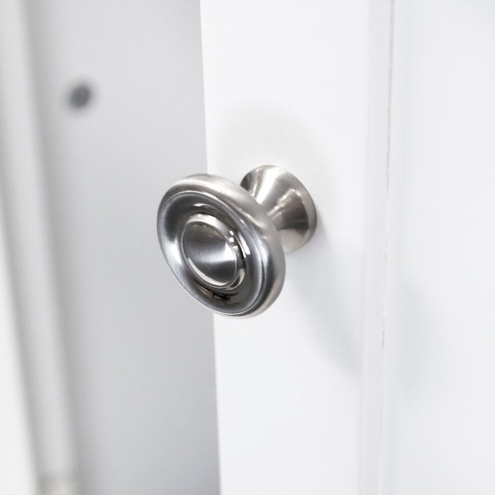 Optimisez l'espace de votre pièce grâce au meuble gain de place Radnevo de Copper Grove, alliant style et fonctionnalité. Ce meuble élégant est doté de glissières de tiroir robustes en métal et d'une porte à panneau surélevé avec un liseré veiné peint. Les poignées de tiroir et de porte en nickel brossé apportent une touche de sophistication à ce meuble polyvalent.