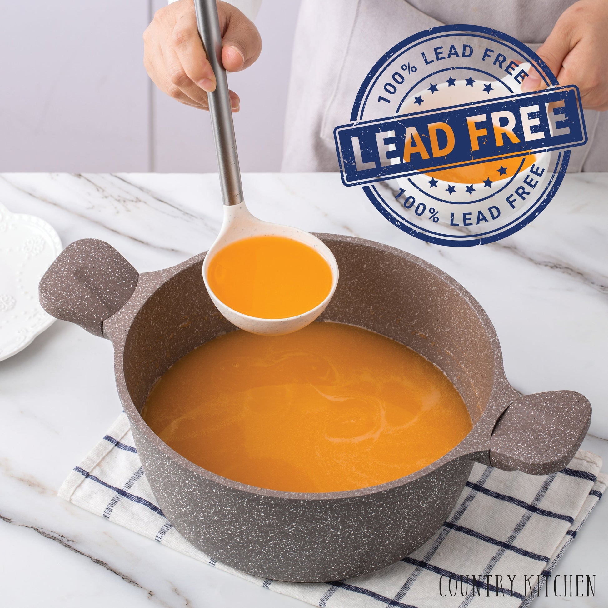 Ensemble de casseroles en fonte d'aluminium antiadhésives Country Kitchen - Batterie de cuisine durable pour la cuisine de tous les jours, 6 à 11 pièces
