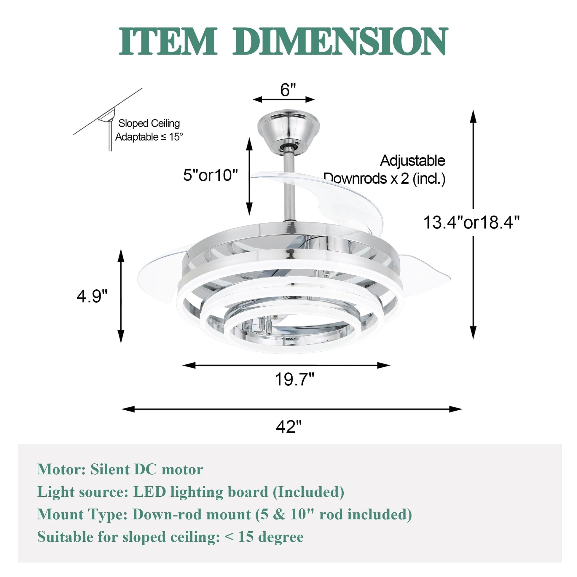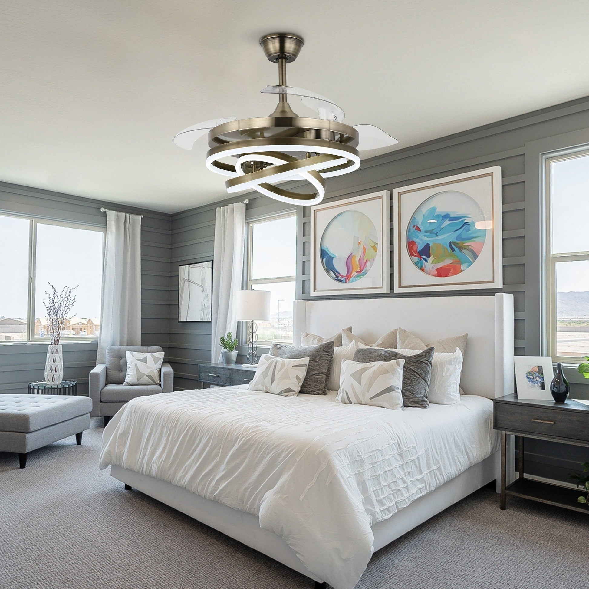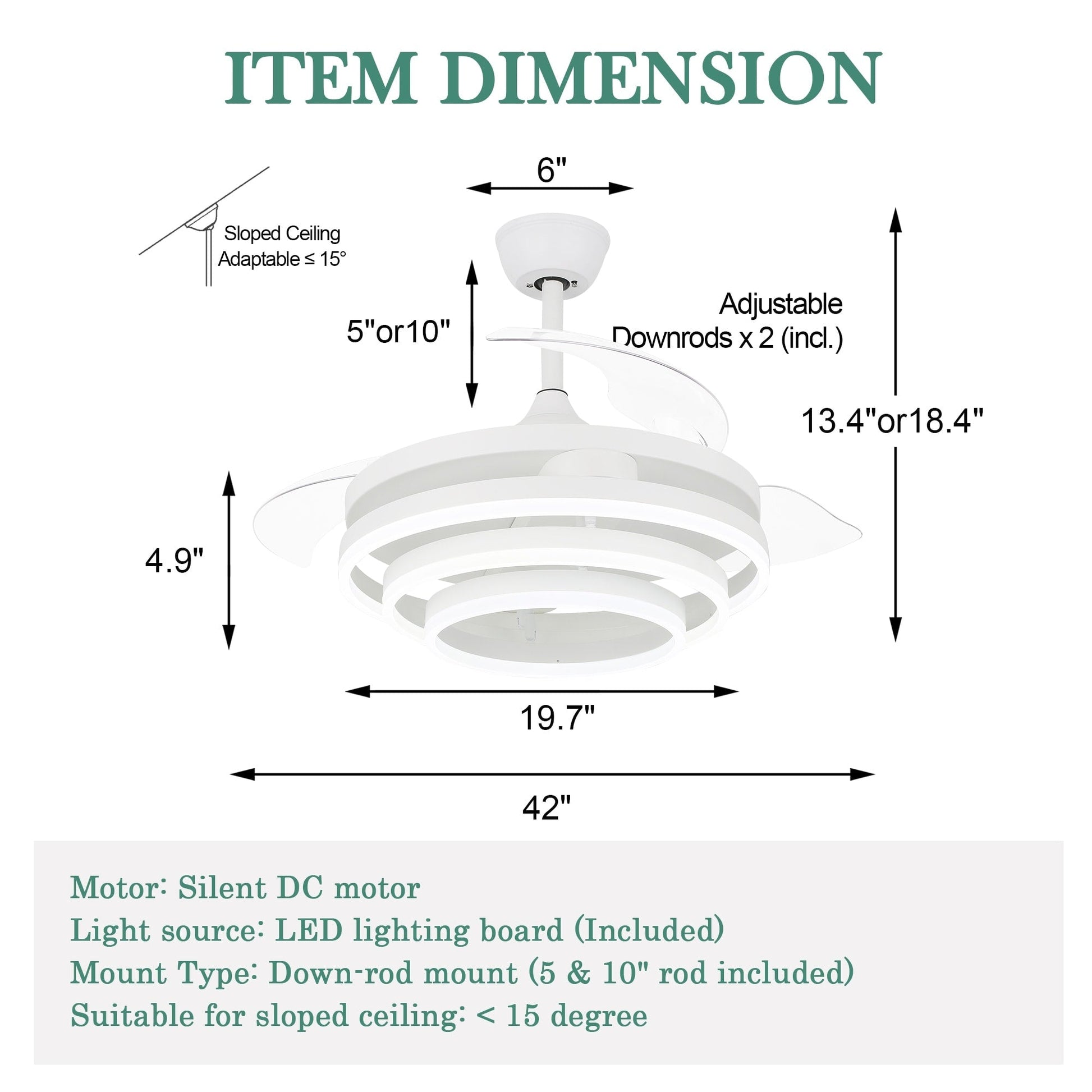 Ventilateur de plafond rétractable Cusp Barn 42 avec lumières et télécommande DIY Forme Fandelier Moderne Silencieux Moteur CC Plafonnier LED