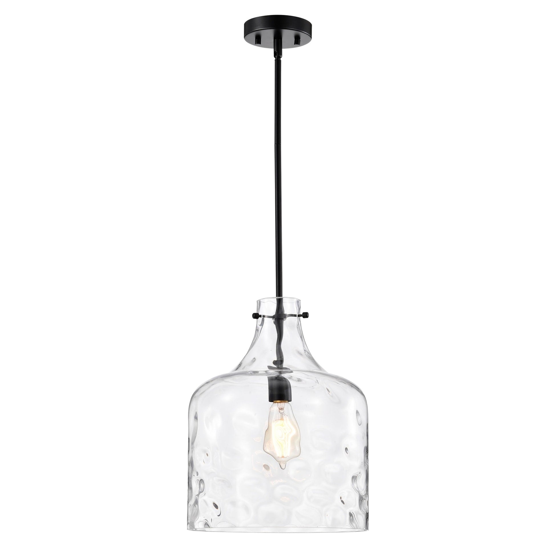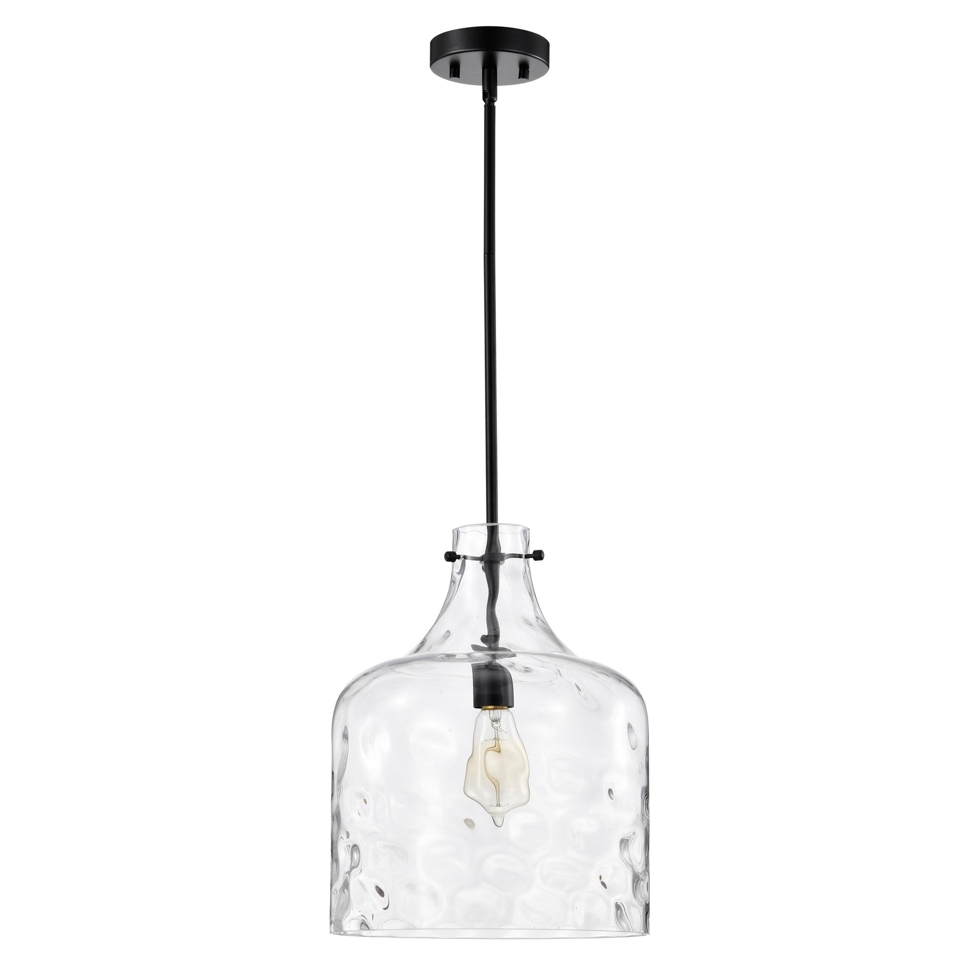 Suspension Daelan en verre transparent alvéolé à une lumière - 30,5 cm