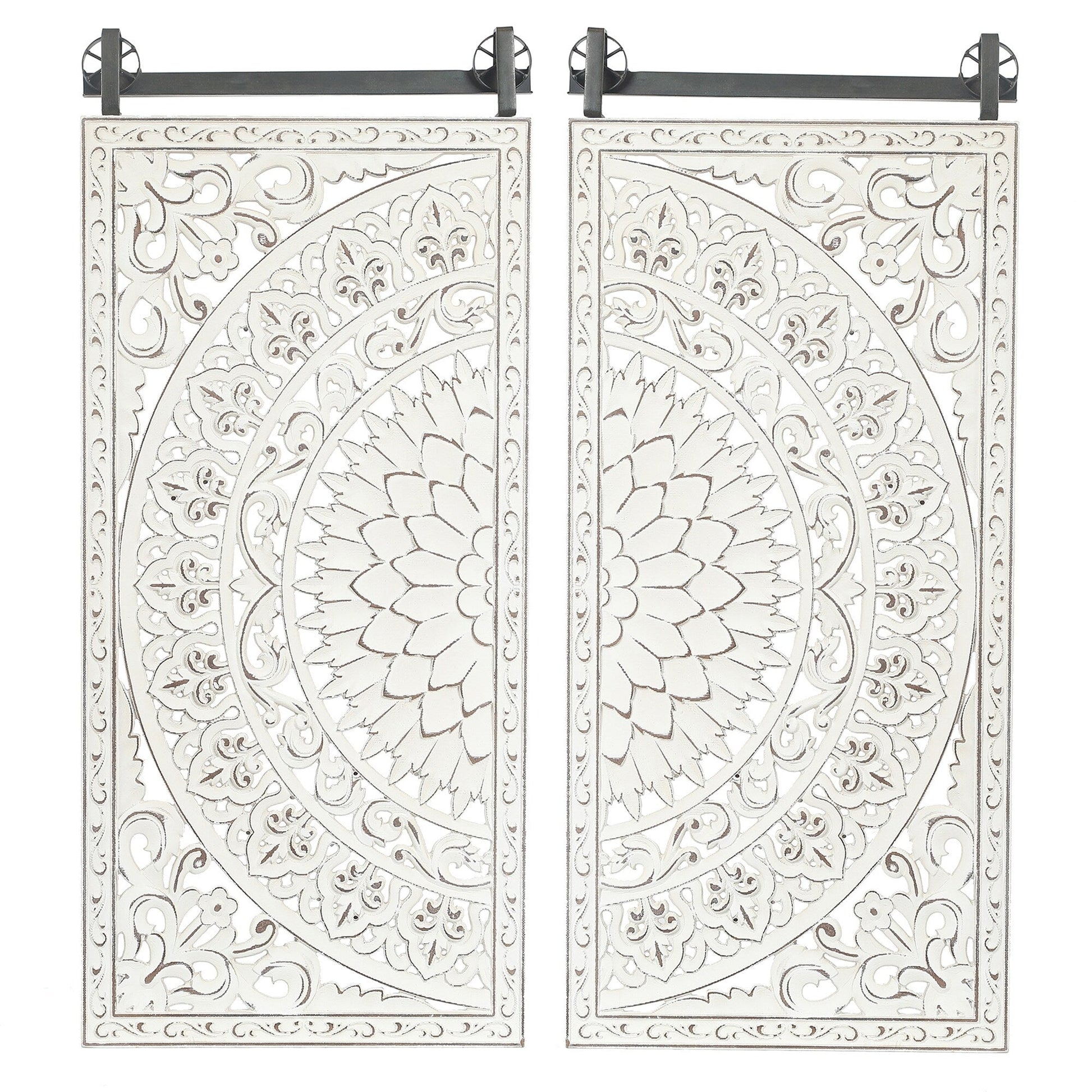 Décoration murale en bois blanc ivoire vieilli avec des accents noirs (lot de 2)