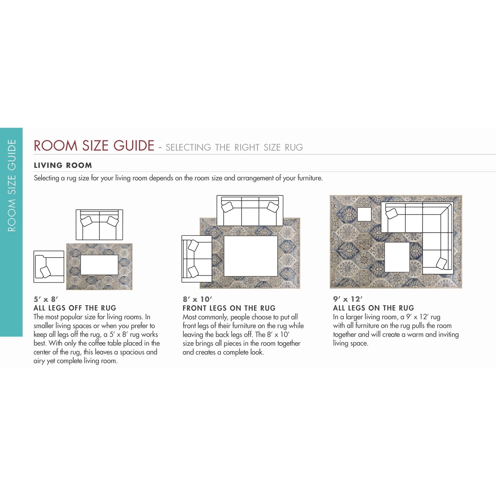 - Remarque : Les dimensions des tapis sont approximatives. Les couleurs peuvent légèrement varier selon les écrans. Pour une représentation fidèle des couleurs, veuillez vous référer à la description ci-dessus.