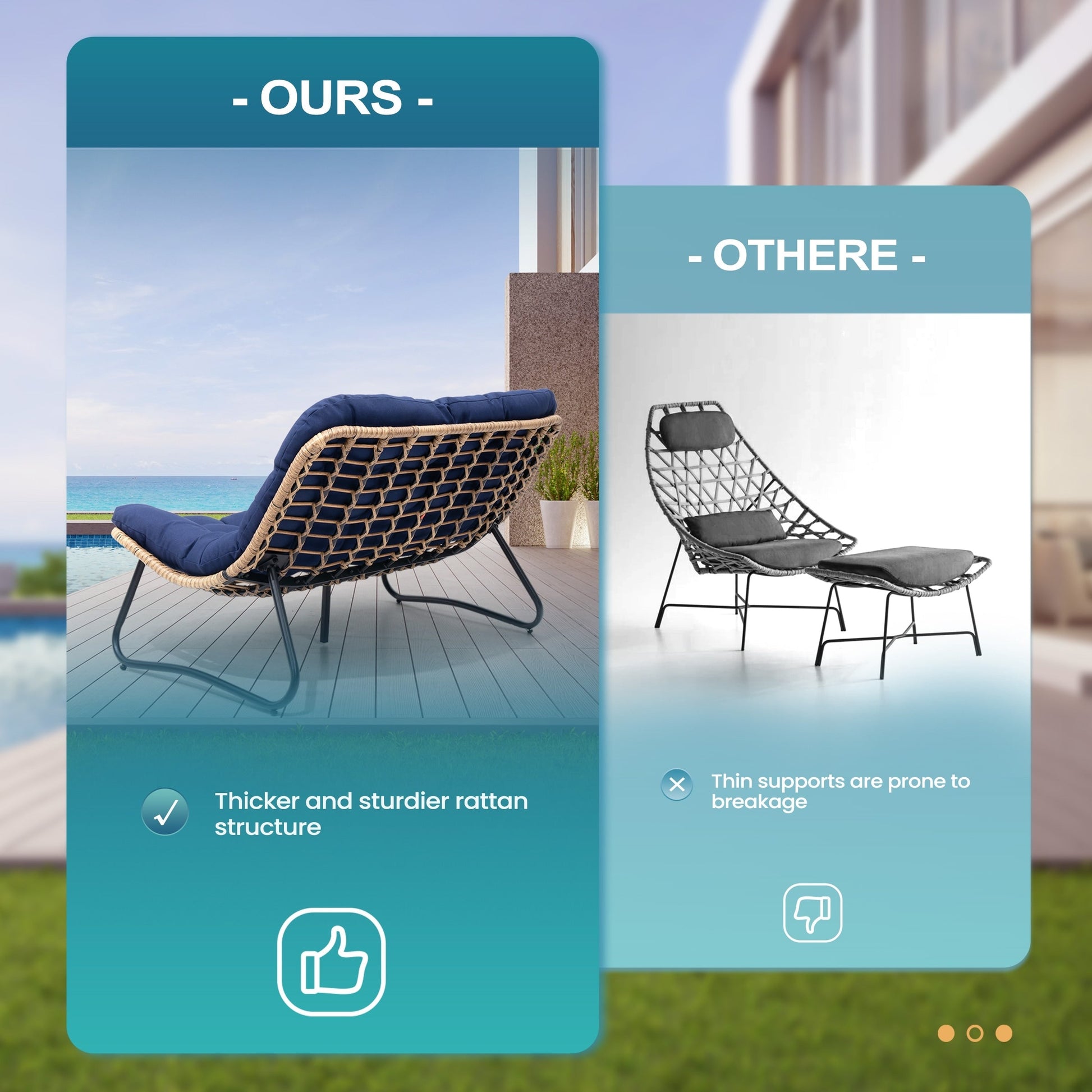 - Fabriqué à partir de rotin PE résistant aux intempéries et d'un cadre en métal robuste