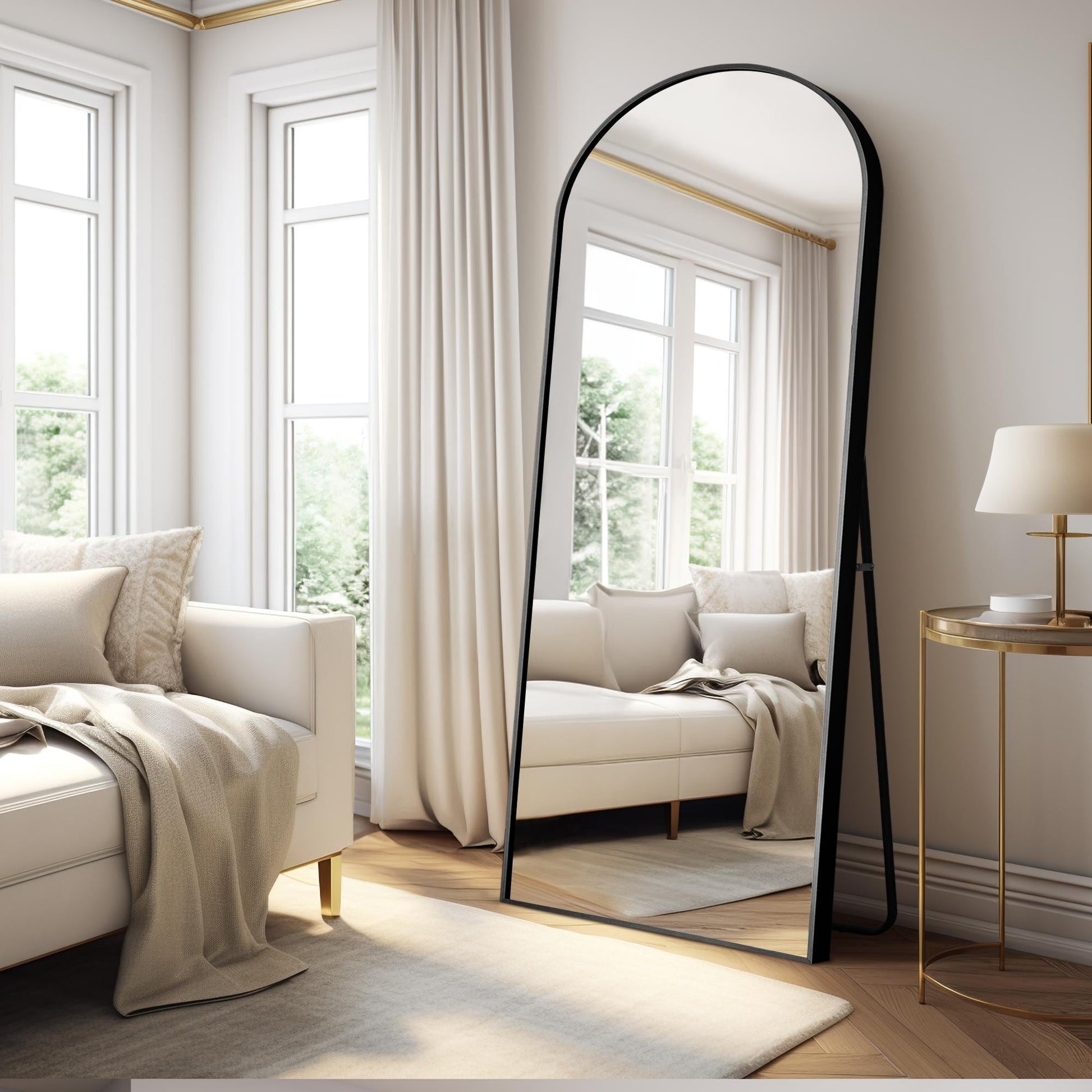 Miroir en arc avec cadre métallique fin : le cadre métallique fin améliore l'aspect moderne et permet plus d'espace de réflexion.