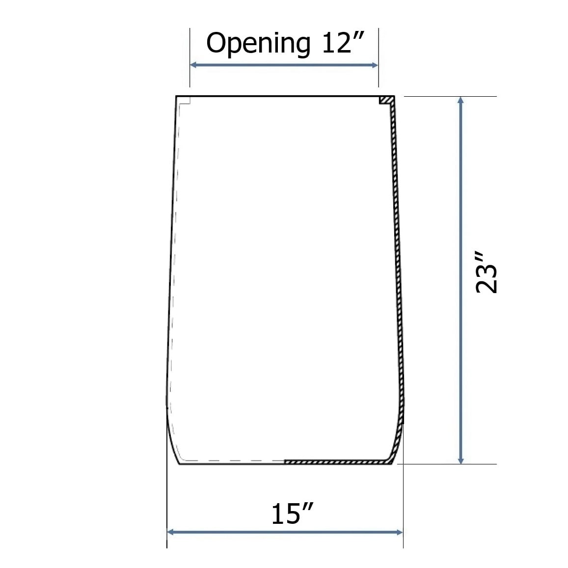 - Petit modèle : 15 pouces de diamètre x 15,5 pouces de hauteur