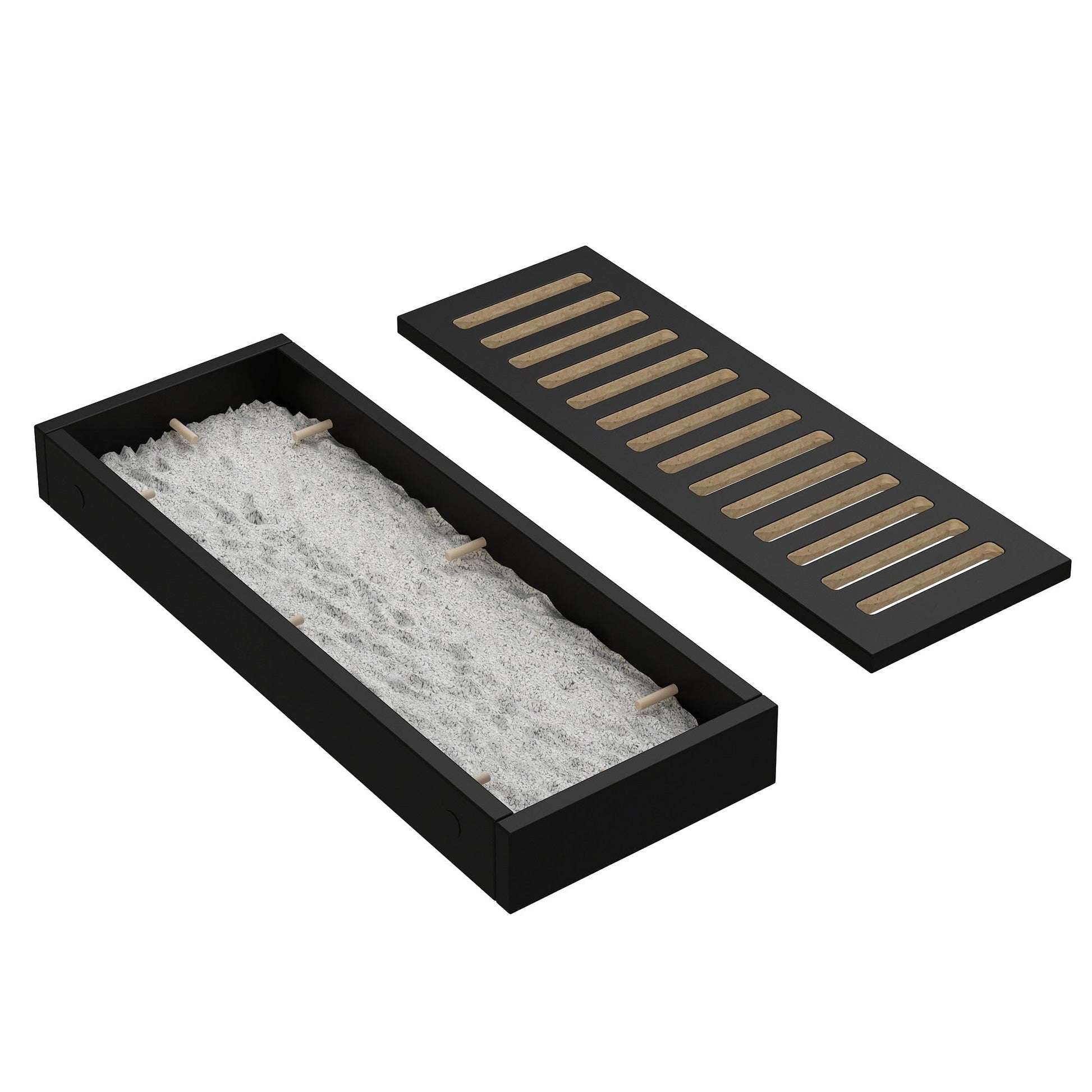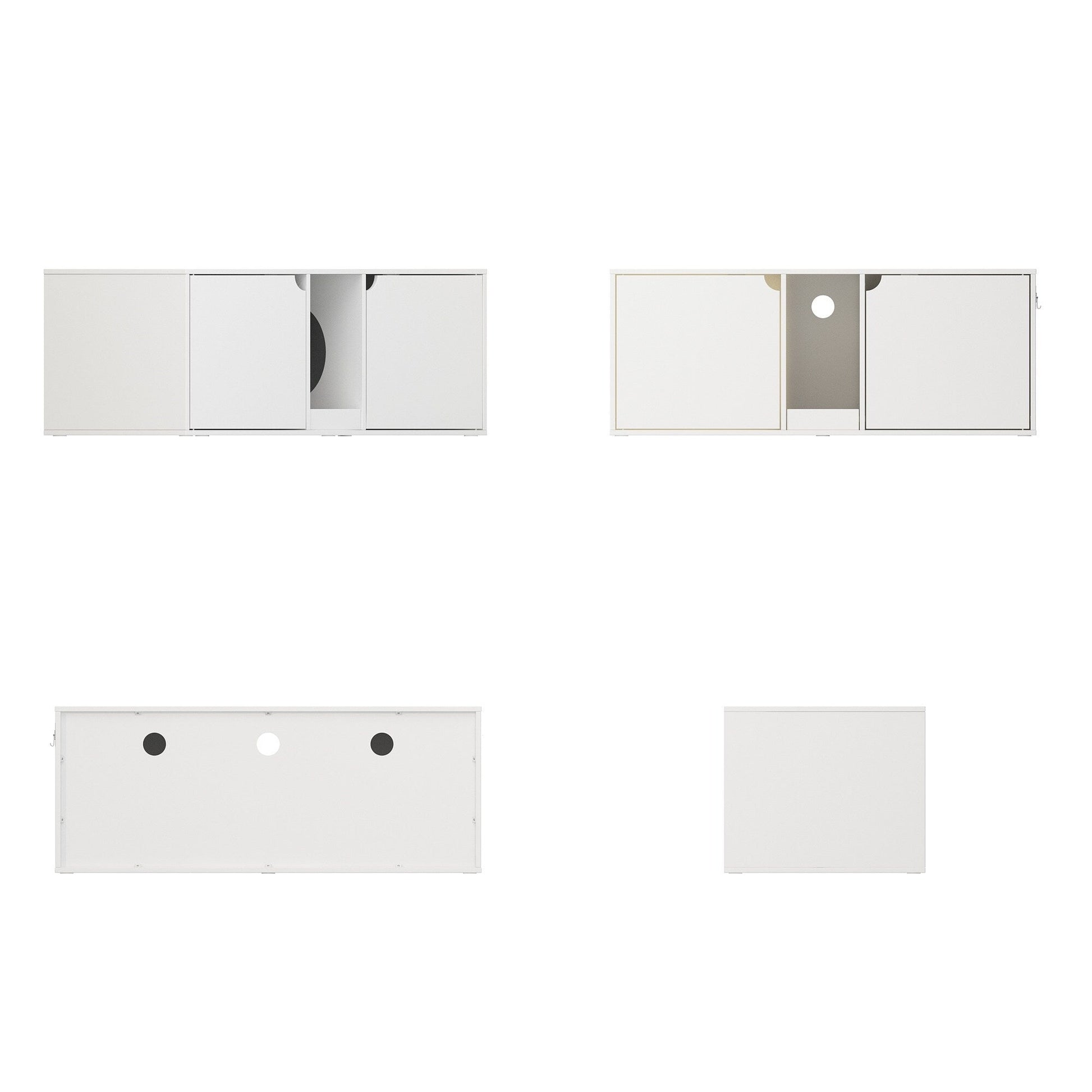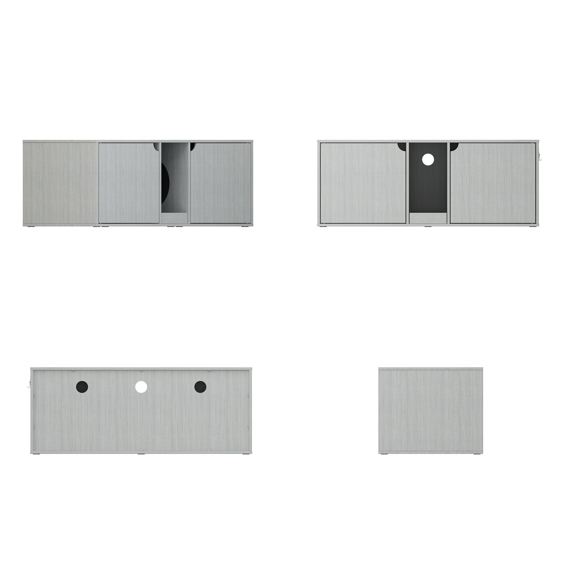 ● Notre meuble pour chats est très spacieux et conçu pour accueillir deux bacs à litière. Il est doté d'une double porte, offrant ainsi à chaque chat son propre espace et son intimité. Un couloir central est prévu pour recueillir la litière, permettant aux chats de s'essuyer les pattes en sortant.