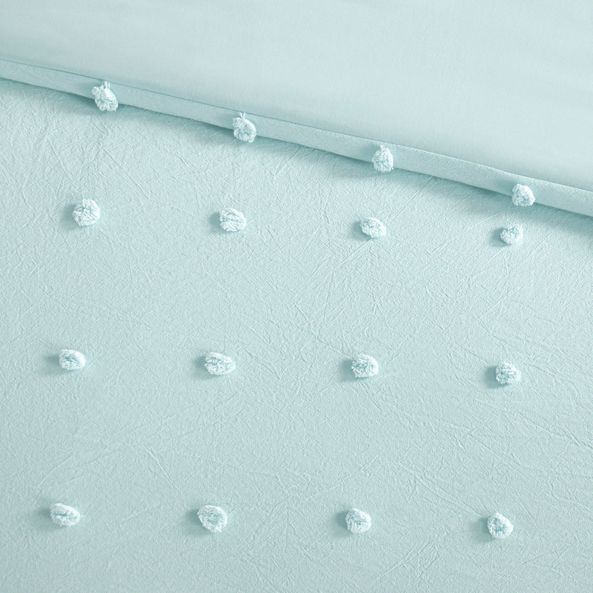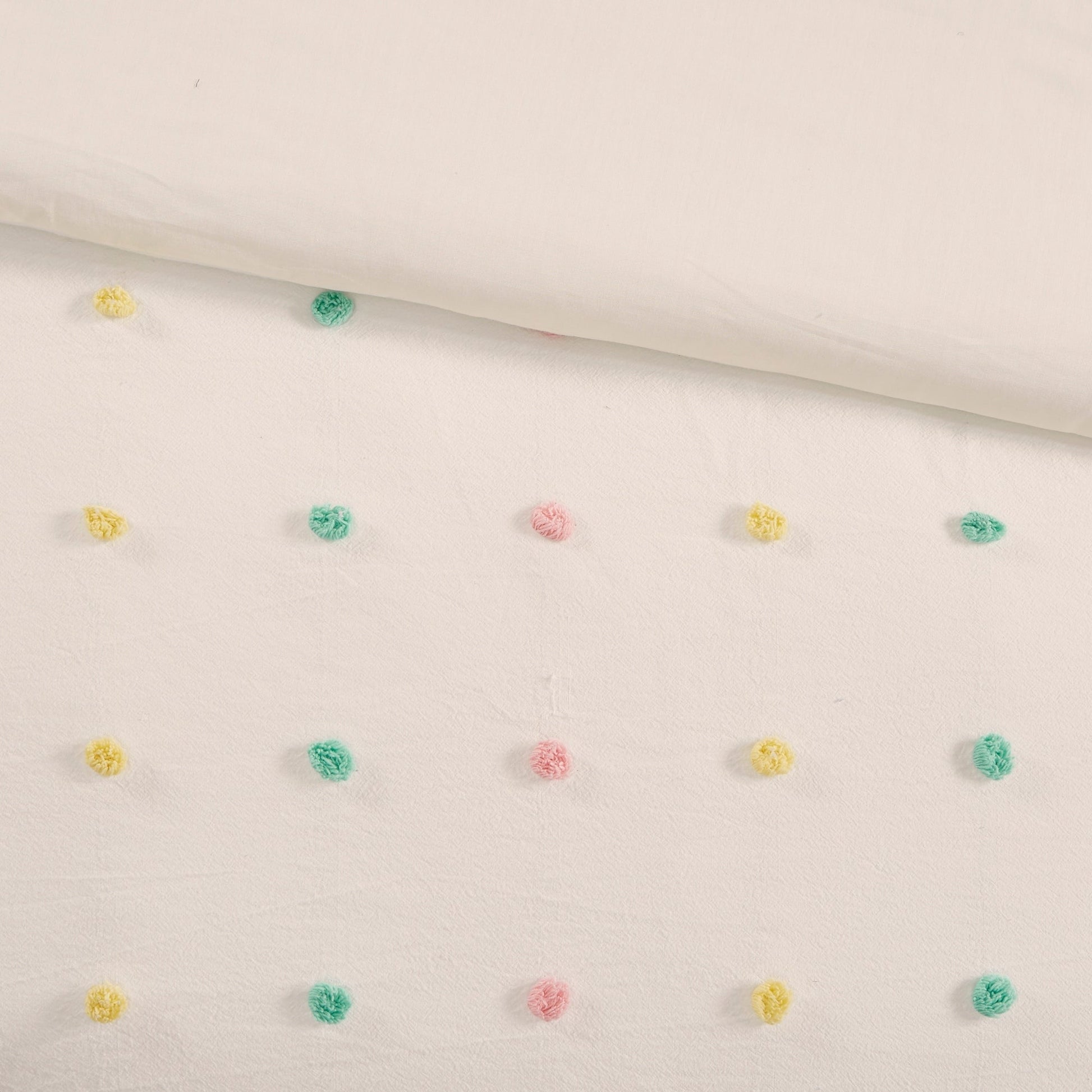 - Pompons jacquard recouvrant tout le dessus du lit