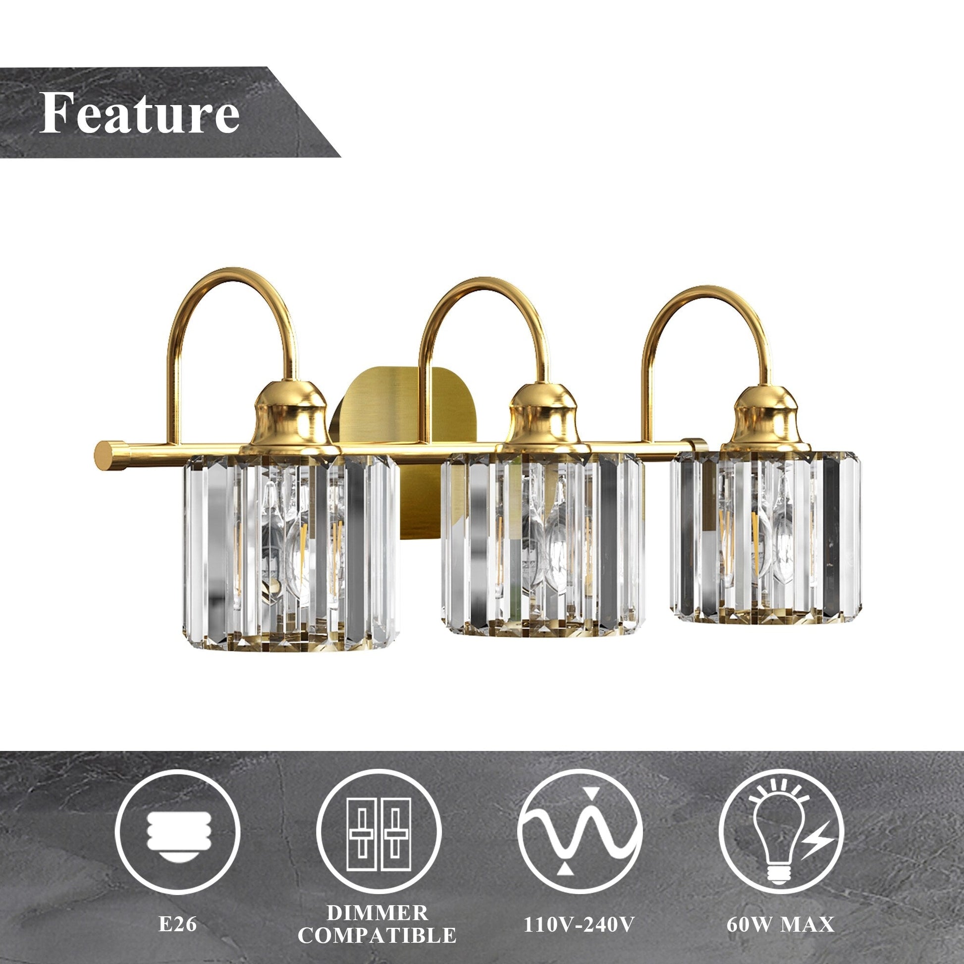 Appliques murales ExBrite modernes en or rose, à 1/2/3/4/5 lumières, avec variateur en cristal, pour salle de bain