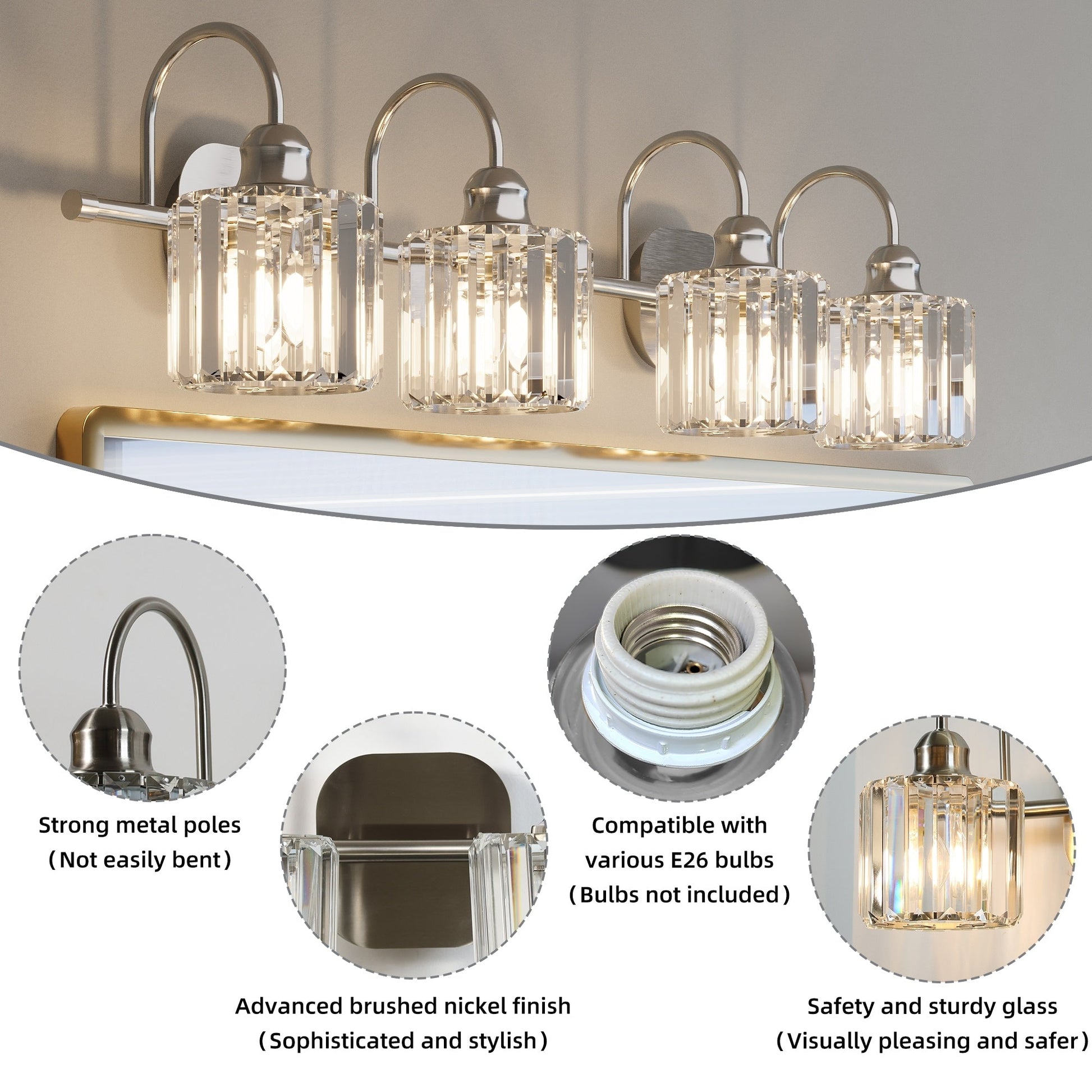 Apportez une touche de luxe et de raffinement à votre salle de bain avec les appliques murales ExBrite Modern Rose Gold. Ces appliques à trois/4 lumières offrent un éclairage optimal et subliment la décoration de votre salle de bain. Fabriquées en métal noir de haute qualité avec des finitions or rose et des abat-jour en cristal transparent haut de gamme, elles allient style et fonctionnalité à la perfection. Compatibles avec les ampoules LED à culot E26, les ampoules halogènes, les ampoules à incandescence et les ampoules basse consommation (ampoules non incluses).