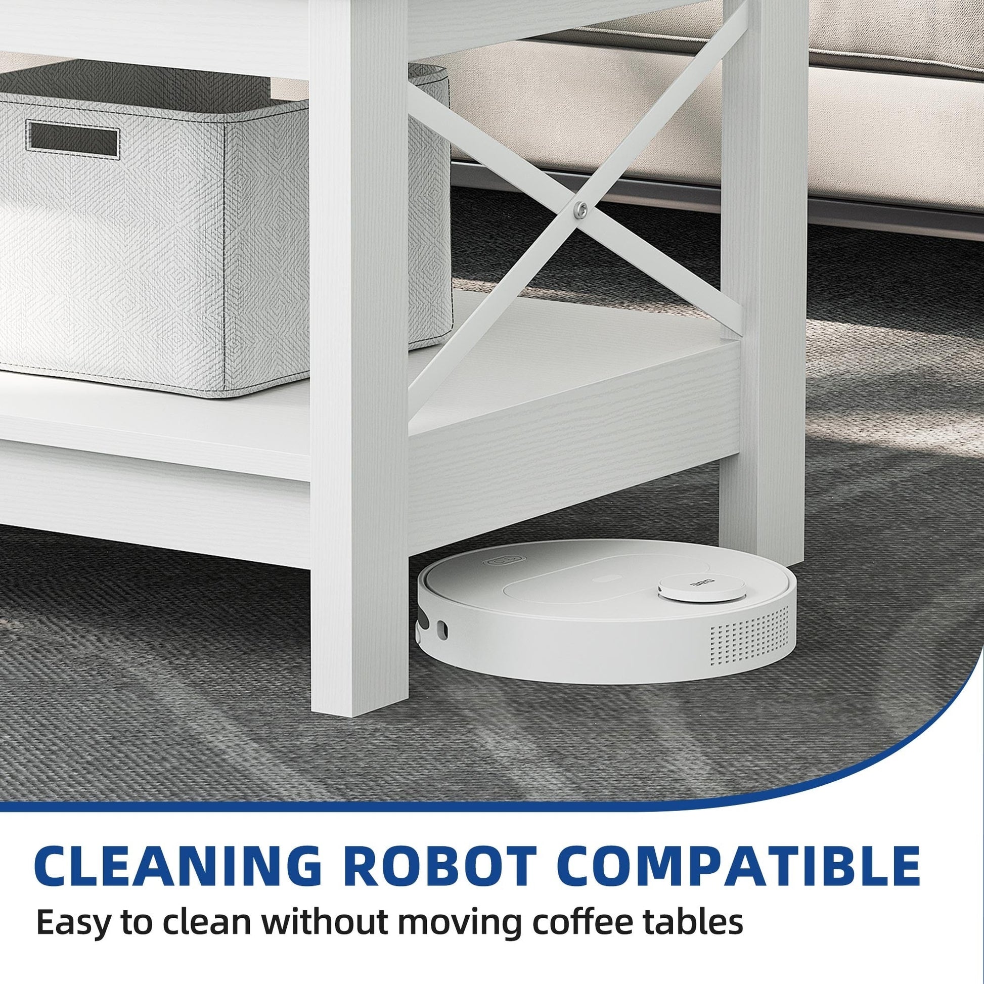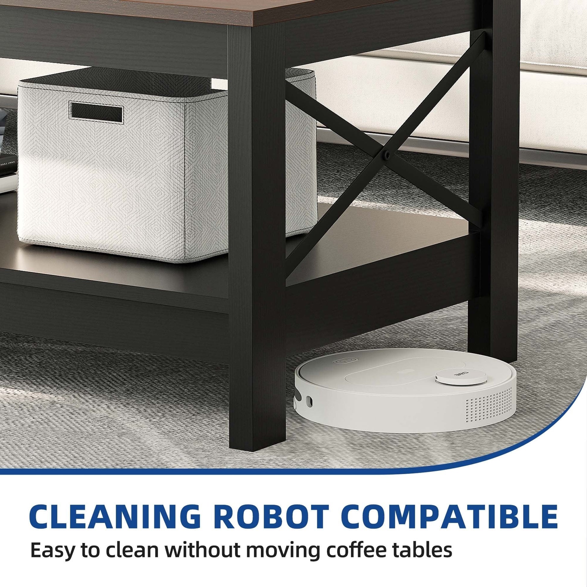 - 1. Double rangement : Cette table basse de rangement dispose de deux niveaux d'espace, offrant un rangement généreux pour vos livres, magazines, télécommandes et autres objets essentiels du salon. Ce double rangement vous permettra de garder votre salon propre et bien rangé.
