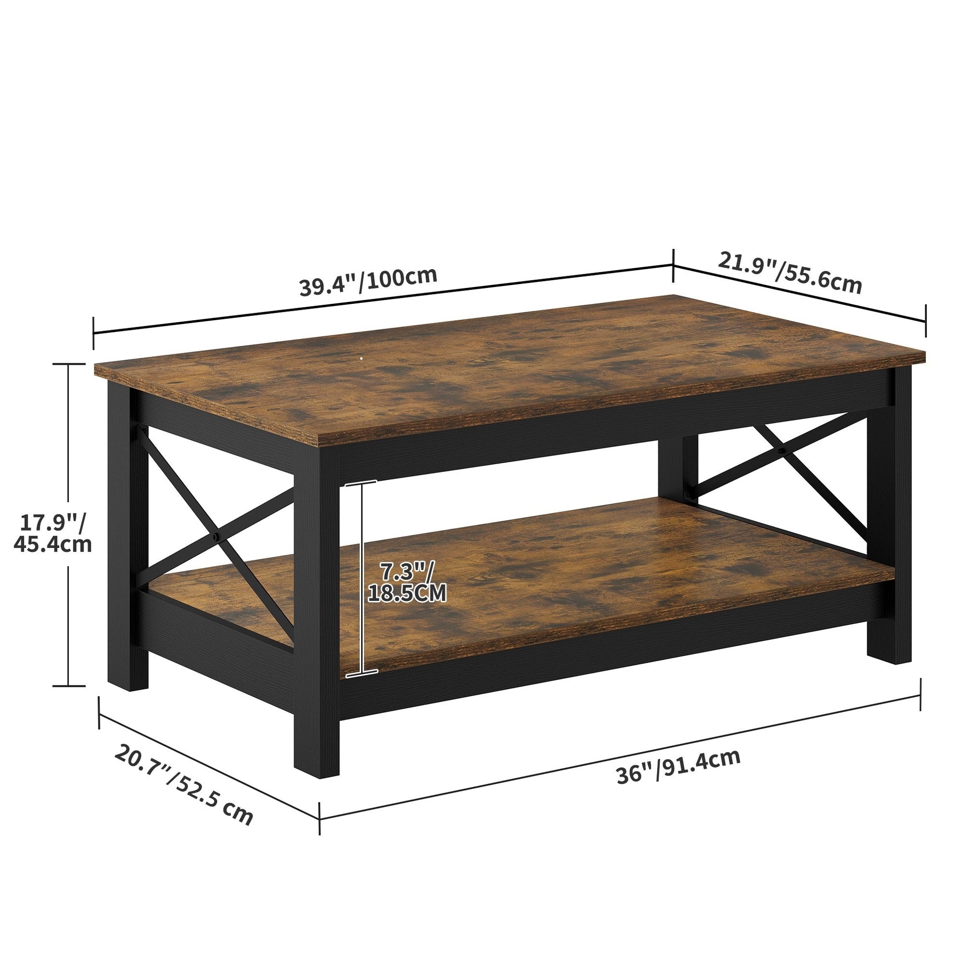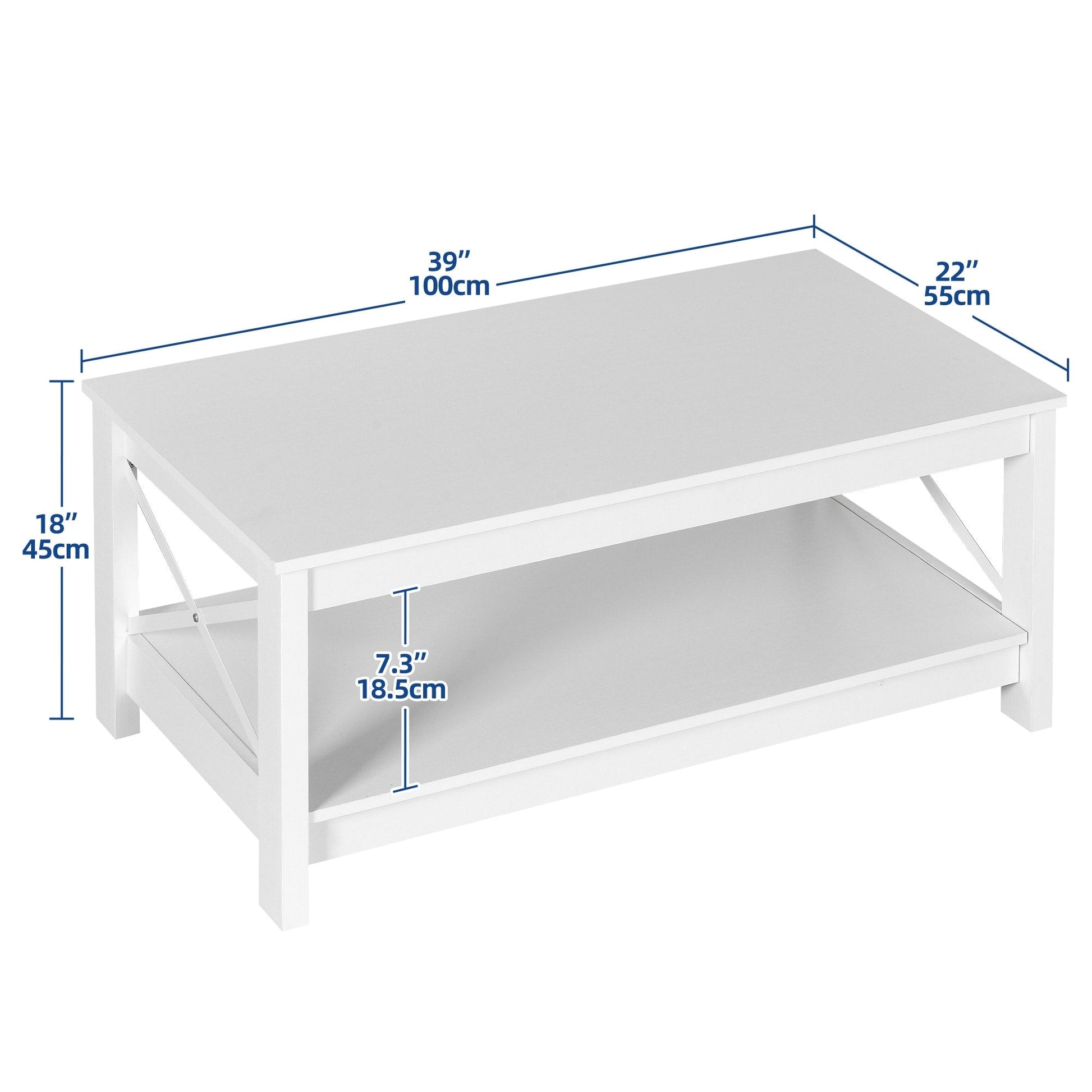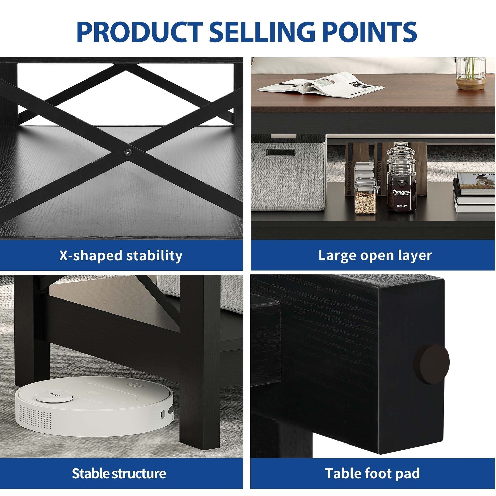 - 3. Design latéral unique en forme de X : Notre table basse présente un design latéral unique en forme de X qui apporte une touche d’élégance et de style à votre salon. Fabriquée en planches épaisses, cette table basse moderne peut supporter jusqu’à 82 kg.