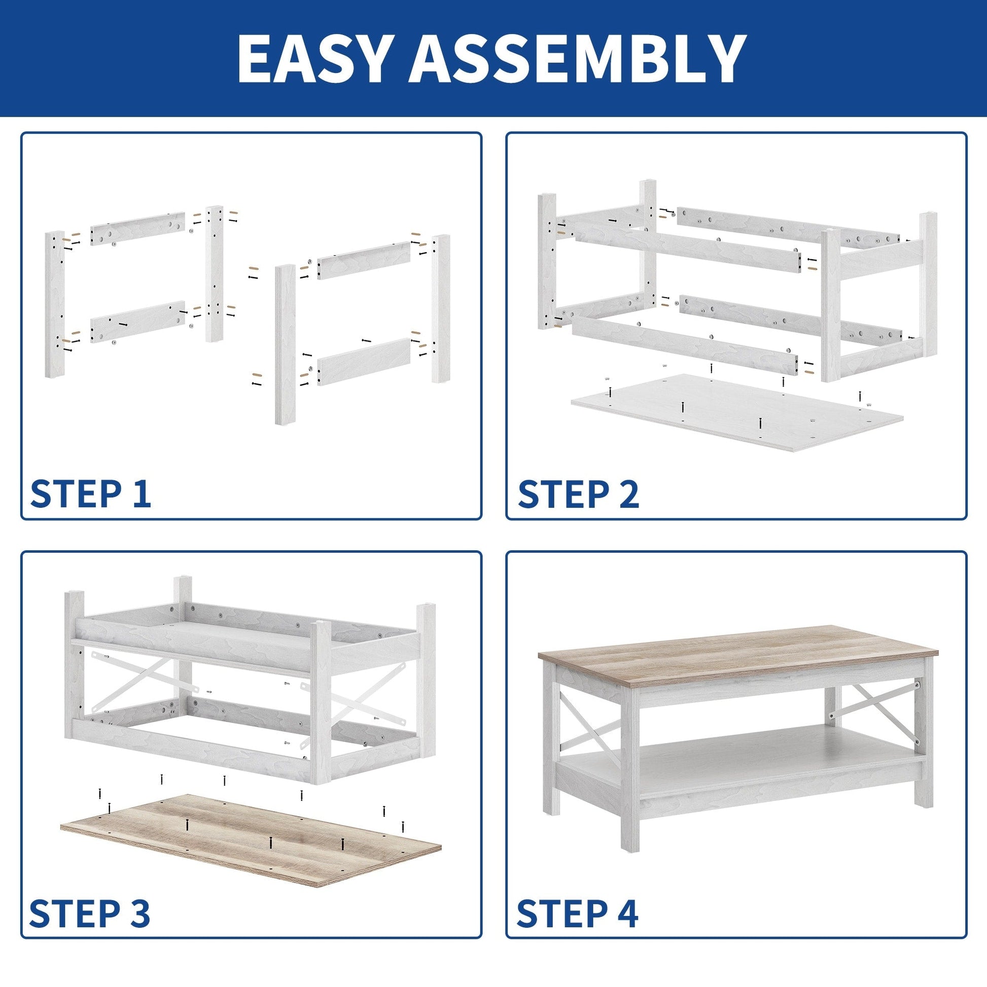 - 4. Montage facile : Cette petite table basse est facile à monter. L’emballage contient tous les outils nécessaires, les instructions de montage des accessoires et un manuel d’utilisation illustré. En suivant attentivement les instructions, vous pourrez installer rapidement votre table basse. Pour toute question, notre excellent service client est à votre disposition.