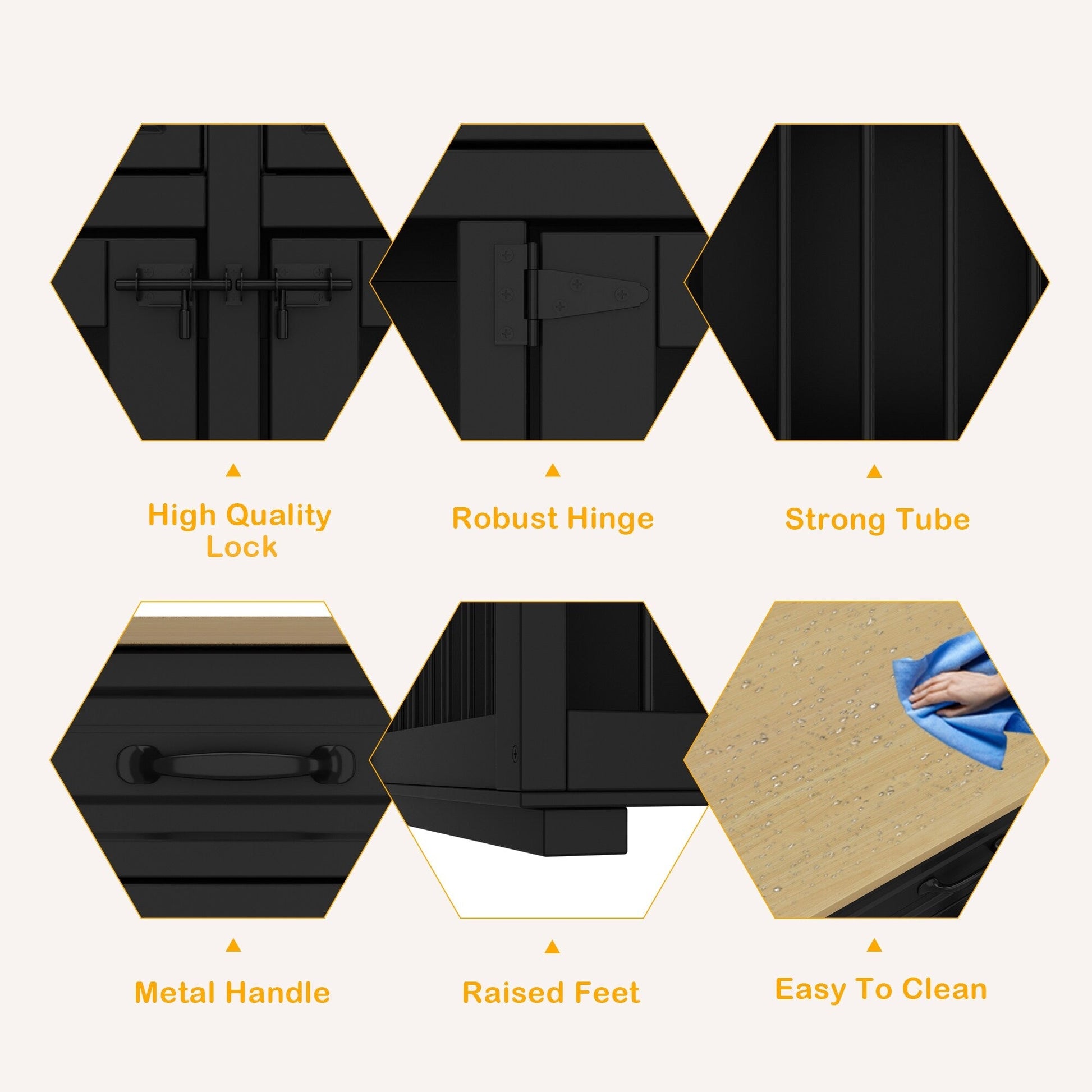 ●【CONCEPTION SOIGNÉE】 La cage pour chien est dotée de barres en fer pour contenir votre animal, tout en lui permettant d'observer la vie quotidienne et de surveiller son état. Deux loquets de porte empêchent les chiens de courir. L'autocollant noir permet de masquer la vis pour un effet plus esthétique. Les patins en feutre augmentent la friction avec le sol pour éviter les glissades et les rayures.