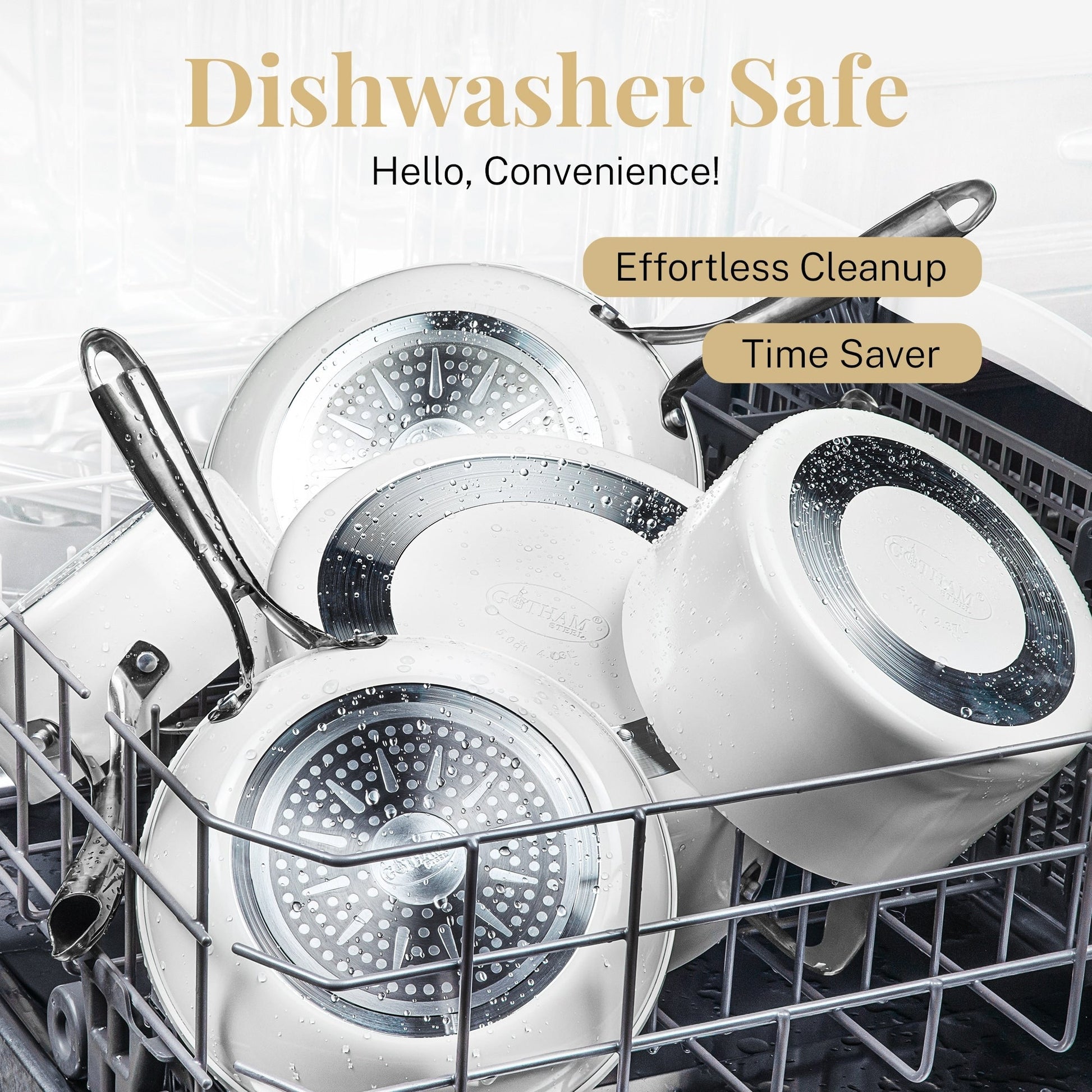 - Soucieux de la santé et non toxique : Fabriqué sans produits chimiques nocifs comme le PTFE, le PFOA, le PFOS et le PFAS, cet ensemble favorise une cuisine sûre et saine et va au lave-vaisselle pour un nettoyage sans tracas.