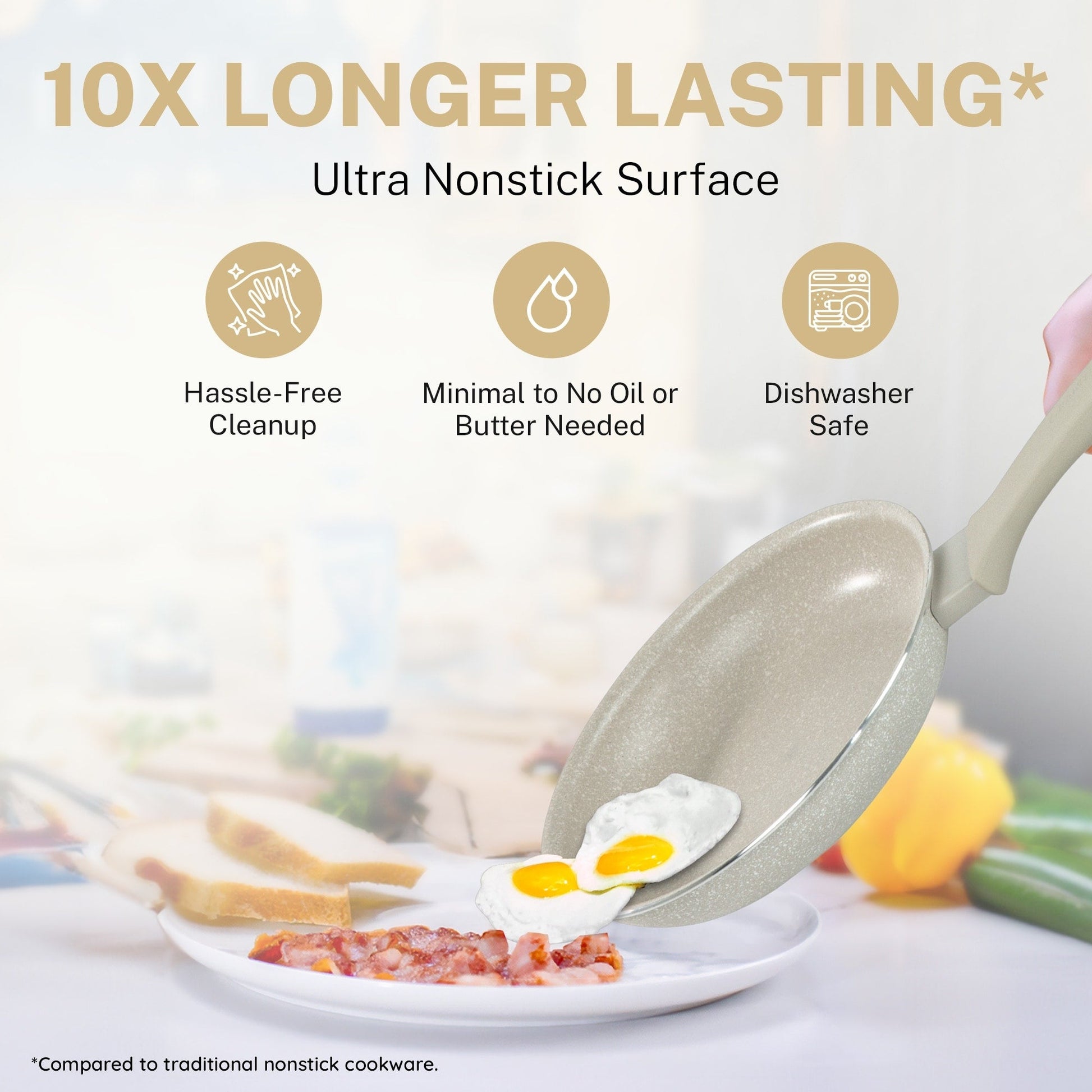 - SAIN ET NON TOXIQUE : Le revêtement en pierre de granit est dérivé de minéraux et renforcé de diamants, garantissant que cette poêle à frire est exempte de PFOA, de PFOS, de plomb et de cadmium pour une expérience écologique et saine pour toute votre famille.