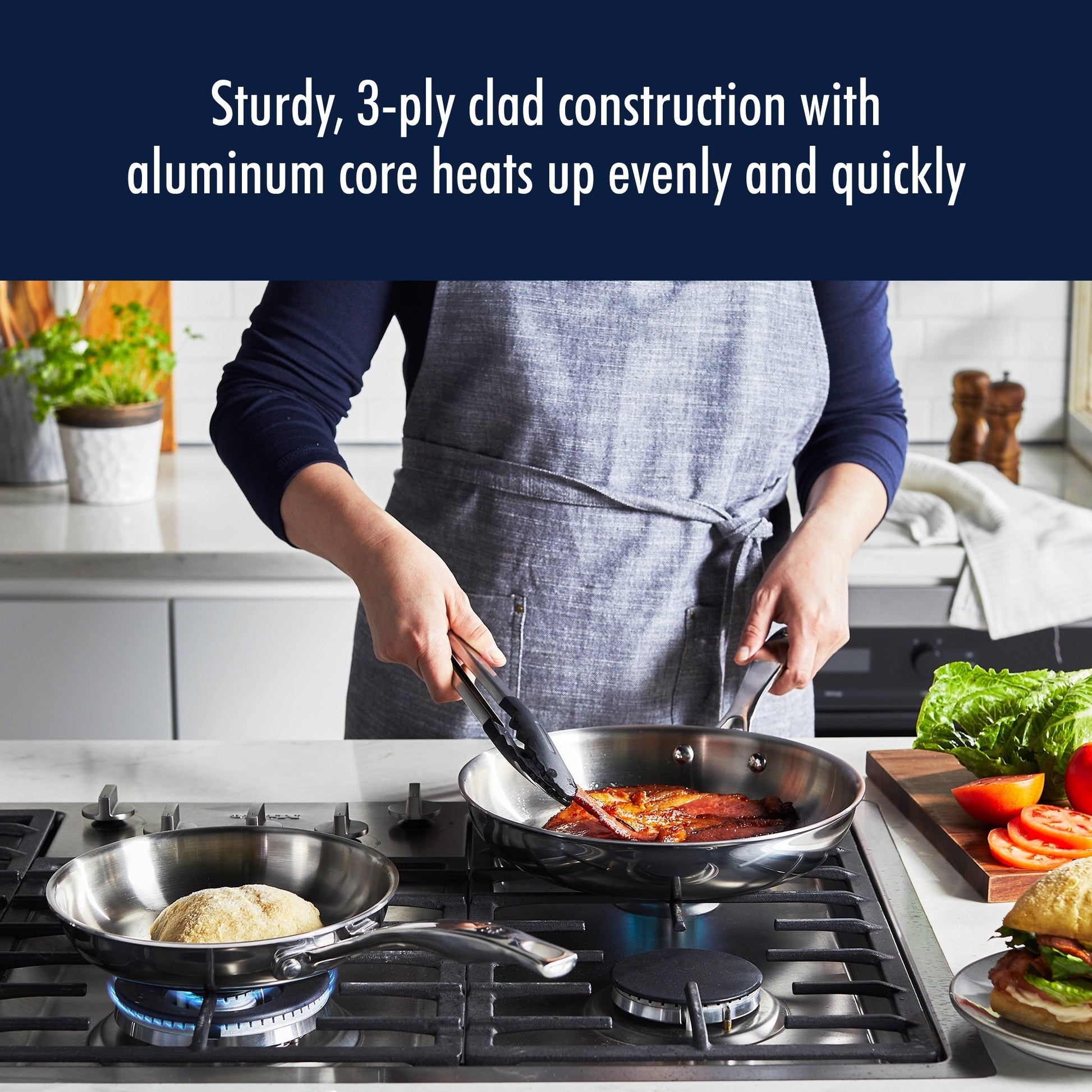Sa construction robuste à triple revêtement et son cœur en aluminium assurent une chauffe rapide et uniforme. Avec sa finition miroir hautement polie, le Clad H3 apporte style et sophistication à toute cuisine.