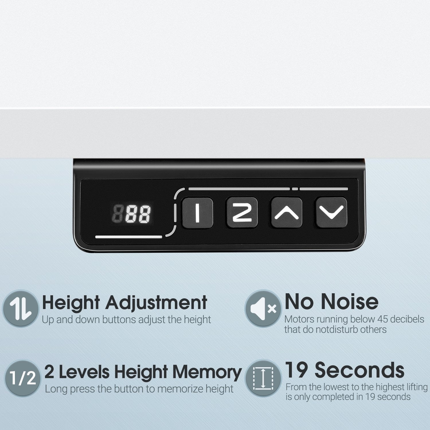 Optimisez votre espace de travail à domicile avec le bureau debout électrique réglable en hauteur Homall. Conçu pour offrir un espace de travail confortable et personnalisable, ce bureau est disponible en plusieurs couleurs et tailles pour répondre à tous vos besoins. Le système de moteur électrique permet un réglage en hauteur fluide et rapide, avec en plus une fonction mémoire à deux positions. Le bureau est silencieux, garantissant un environnement de travail silencieux. Avec sa structure en acier de qualité industrielle et son plateau robuste, ce bureau peut supporter jusqu'à 79 kg. Le montage est rapide et facile, en moins de 30 minutes grâce au manuel fourni.